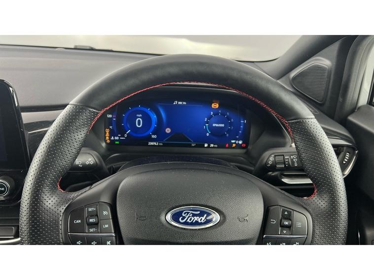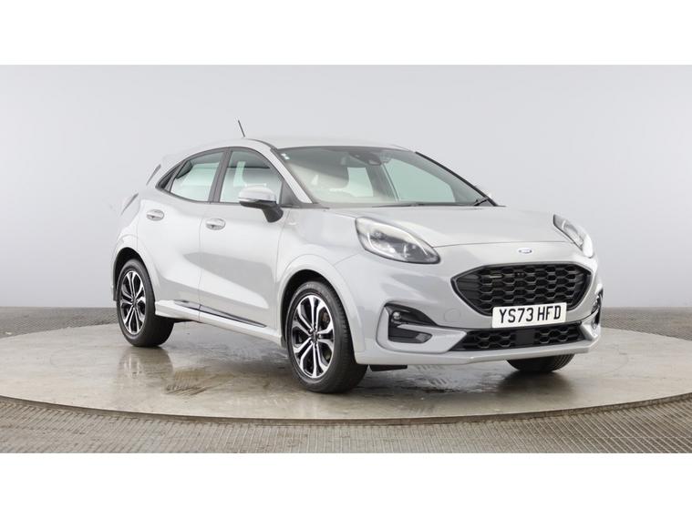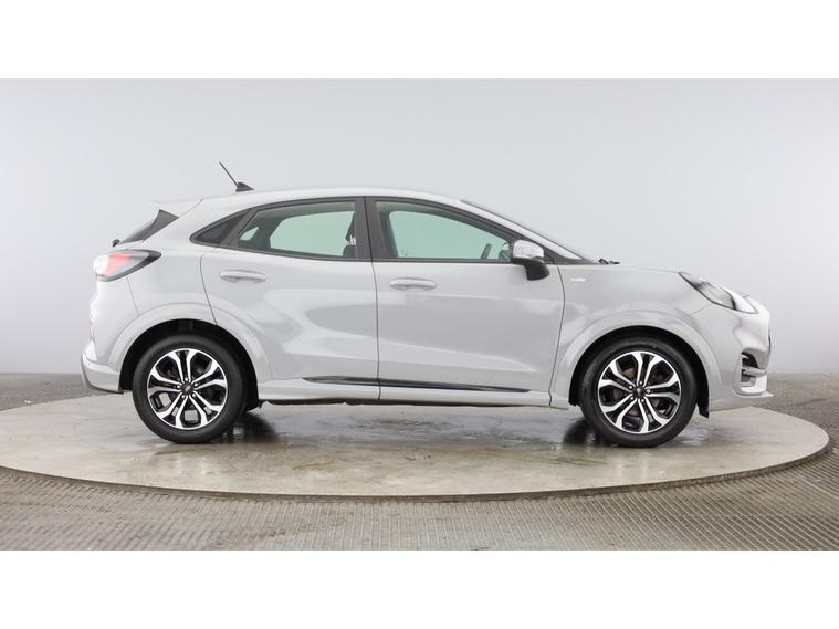 Turn every journey into something special with the Ford Puma 1.0T EcoBoost MHEV ST-Line — a compact SUV that combines head-turning ST-Line styling with punchy mild-hybrid performance.Under the bonnet, the award-winning 1.0L EcoBoost petrol engine paired with Mild Hybrid (MHEV) technology produces an impressive 155 PS, delivering strong acceleration while enhancing fuel efficiency. Matched with a slick 6-speed manual gearbox, it offers an engaging drive with lower emissions thanks to Euro 6 (s/s) technology.ST-Line Features Include:ST-Line body styling kit & sports suspension18” ST-Line alloy wheelsSports seats with red stitchingFlat-bottomed leather multifunction steering wheelFord SYNC touchscreen infotainment systemApple CarPlay & Android AutoSatellite navigationRear parking sensorsLED daytime running lightsKeyless startElectronic climate controlQuickclear heated windscreenInside, you’ll find a driver-focused cabin with premium finishes and smart practicality, including Ford’s innovative MegaBox boot space for added versatility.With sharp handling, bold styling, and hybrid-assisted efficiency, the Puma ST-Line 155 PS delivers sporty performance without compromising everyday usability.Athletic design. Hybrid intelligence. Pure driving fun.
