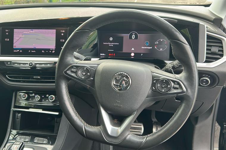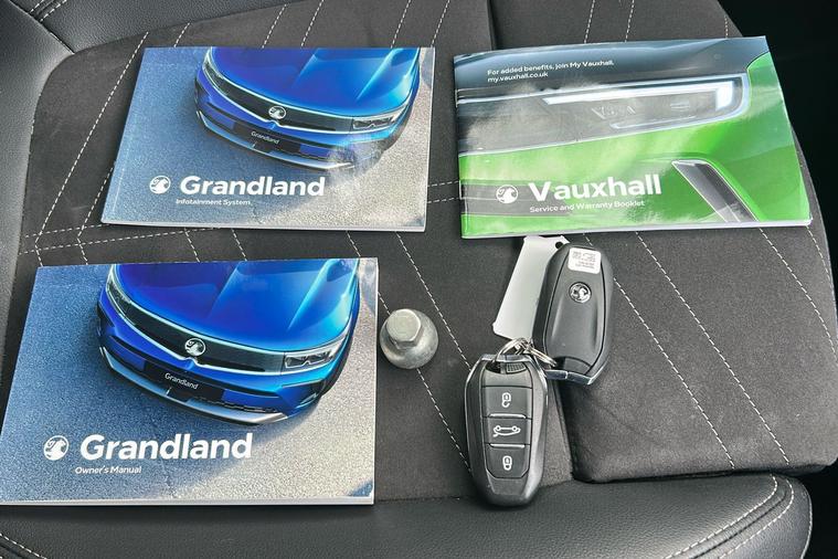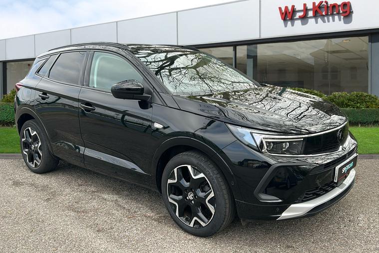 Experience style and practicality with this used 2021 Vauxhall Grandland Ultimate, finished in eye-catching metallic Carbon Black. This automatic SUV offers a confident drive and a combined fuel efficiency of 44.1 mpg. Under the bonnet, a responsive 1.2-litre turbo petrol engine delivers 128 horsepower, achieving 0-62 mph in 10.3 seconds and a top speed of 121 mph. The spacious interior comfortably seats five and provides a generous 514 litres of boot space, expanding to 1, 652 litres for larger loads. Premium touches include diamond cut alloy wheels, adaptive LED headlights, advanced park assist with a 360-degree camera, ergonomic heated front seats, and a power tailgate with foot sensor. Registered in November 2022 and with just one previous keeper, this Grandland balances contemporary design with impressive everyday capability, making it an excellent choice for those seeking a reliable and stylish SUV.