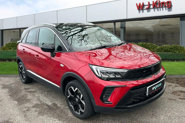Introducing this stylish used Vauxhall Crossland Ultimate, first registered in June 2022 and finished in eye-catching Premium Hot Red with a contrasting black roof. This sporty SUV offers impressive efficiency with a combined fuel economy of 44.8 mpg and smooth automatic driving. Its versatile five-door, five-seat layout provides a generous 410 litres of boot space, expanding to 1255 litres for added practicality. With a spirited 1.2 turbocharged petrol engine delivering 128 horsepower, you can enjoy confident performance, reaching 62 mph in just 9.9 seconds and a top speed of 123 mph. The Crossland Ultimate features striking bi-colour alloy wheels, dark tinted rear windows, a panoramic rear-view camera, and advanced driver aids including lane departure warning and automatic emergency braking with pedestrian detection. This vehicle remains a great choice for urban or family use, with only one previous keeper. ULEZ compliant for peace of mind in London.