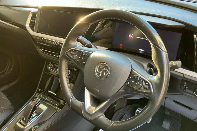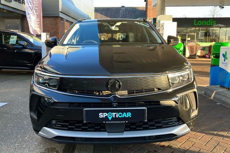 Presenting a 2021 Vauxhall Grandland Ultimate, finished in Metallic Diamond Black, with a single previous keeper. This automatic SUV combines sophisticated style and practicality, offering ample space for five passengers. Enjoy impressive fuel efficiency with a combined 44.1 mpg. With a 1.2L petrol engine delivering 128 hp, you can experience smooth journeys and a maximum speed of 121 mph, reaching 0-62 mph in just 10.3 seconds.The Grandland Ultimate comes equipped with desirable features, including a 360-degree panoramic parking camera, advanced park assist, Adaptive IntelliLux LED Pixel Headlights, keyless entry and start, a power tailgate with foot sensor, side blind spot alert, ergonomic active heated front sports seats, plus a Multimedia Navi Pro system with satellite navigation display and wireless charging.This vehicle offers both comfort and reassurance, making it a perfect companion for daily driving or long-distance adventures. ULEZ compliant for peace of mind in low emission zones.