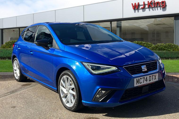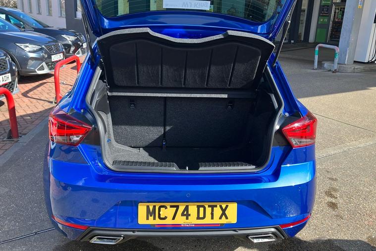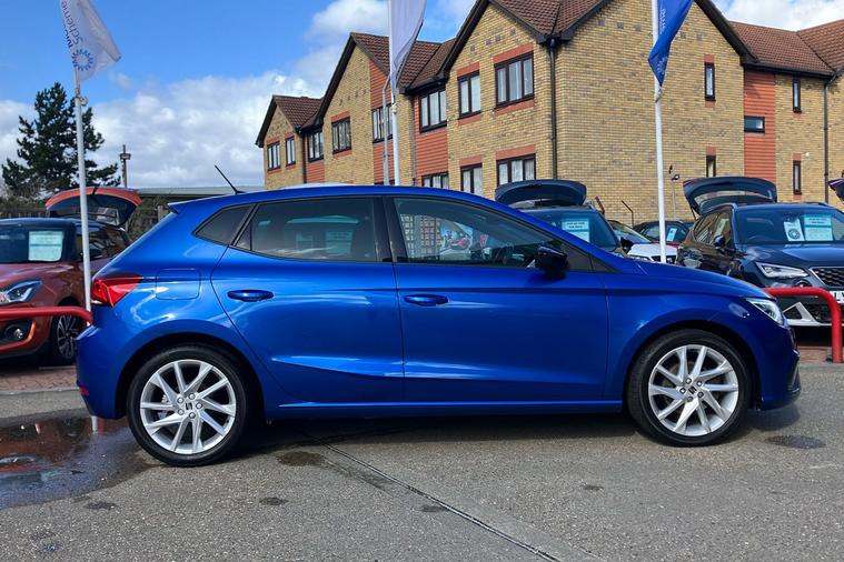 Finished in striking Metallic Bahama Blue, this used SEAT Ibiza FR Hatchback from 2021 combines sharp looks with impressive practicality. Enjoy lively performance from a 999cc petrol engine delivering 113hp and a top speed of 123mph, while achieving an efficient 51.4mpg combined. This five-door, five-seat hatchback offers a spacious boot with 355 litres of luggage room, making it ideal for day-to-day journeys or longer trips. Features include striking 17-inch alloy wheels in Brilliant Silver, dark tinted rear windows, cruise control with speed limiter, and a high-quality digital cockpit, enhancing every drive. Additional touches such as a 9.2-inch navigation system, full LED automatic headlights and ambient interior lighting provide style and convenience. ULEZ compliant and with just one previous keeper, this Ibiza FR Hatchback blends sporty flair with everyday comfort, ready to take on city streets or open roads with ease.