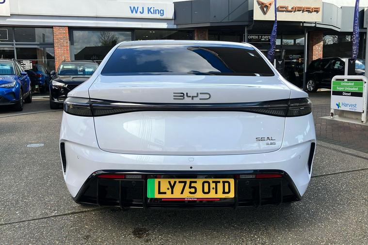 Discover the impressive BYD Seal Excellence, a used 2023 saloon finished in striking metallic Polar White. Powered by a large 82.5 kWh battery, this electric vehicle delivers an excellent range of up to 323 miles and features Four Wheel Drive for confidence in all conditions. With 523 horsepower and a top speed of 111 mph, the Seal offers both excitement and comfort on every journey. Inside, you’ll enjoy a panoramic roof, a sophisticated sound system, ambient multi-colour lighting, and dual-zone climate control. The spacious boot provides 485 litres of storage, perfect for family life or weekends away. Advanced safety and intuitive technology, such as a 360-degree camera, heads-up display, and smartphone wireless charging, ensure a connected and secure driving experience. Practical, modern, and efficient, the BYD Seal Excellence is well suited to those seeking an all-electric saloon with outstanding features.
