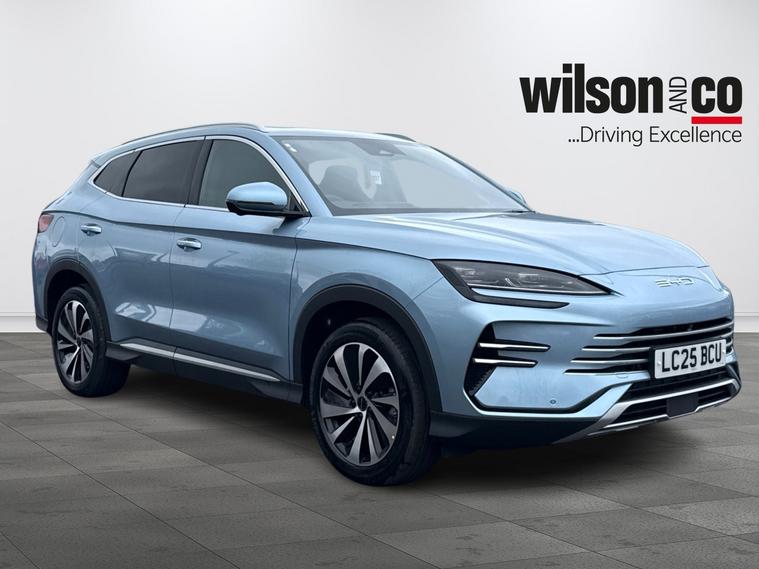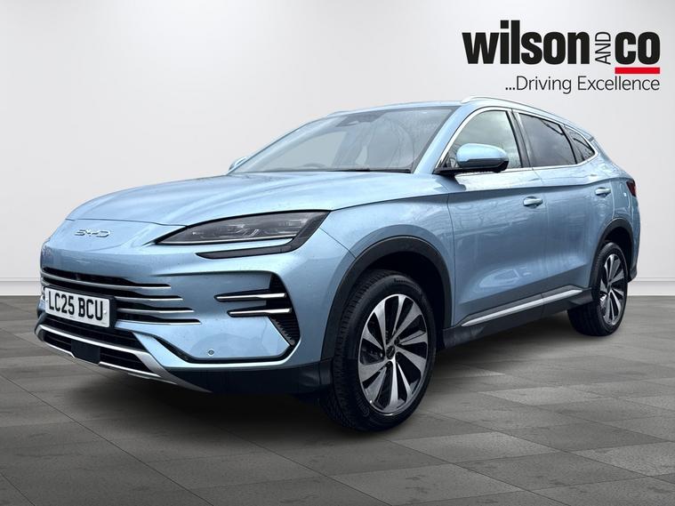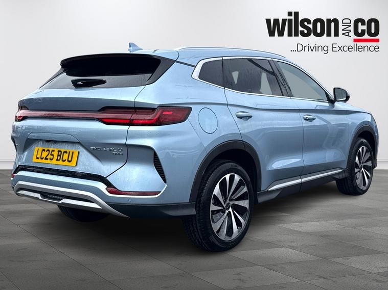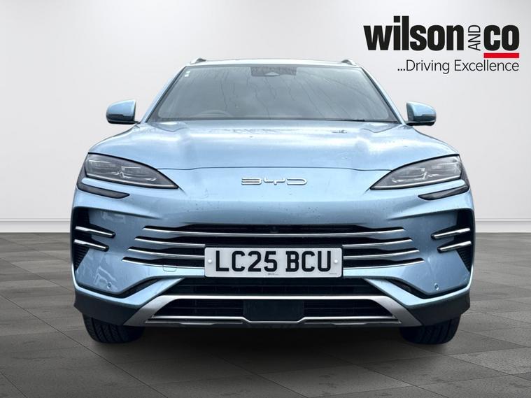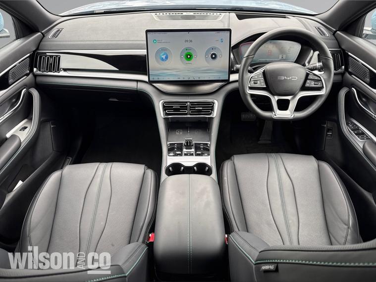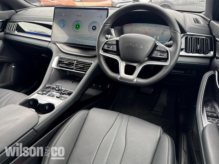 The BYD Seal U Design is the top-spec, all-wheel-drive (AWD) plug-in hybrid SUV featuring a 1.5L turbocharged engine, 18.3 kWh battery, 315-324hp (324 PS), and a 5.9-second 0-62 mph time. It offers ~43 miles electric range, 19-inch wheels, panoramic sunroof, and a 15.6-inch rotating touchscreen.