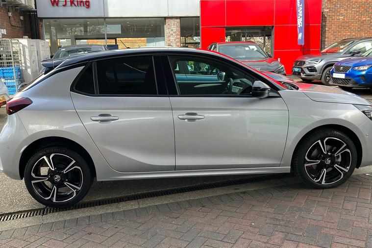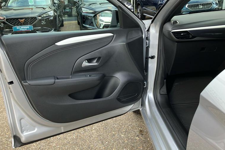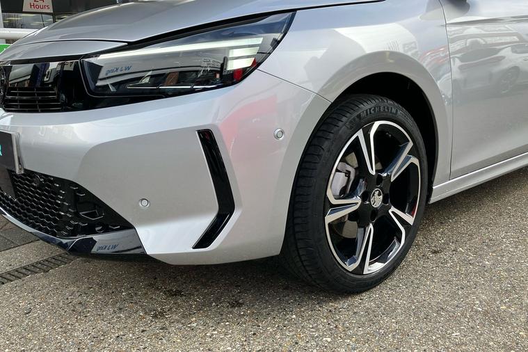 Experience a stylish drive with this 2023 Vauxhall Corsa in metallic Crystal Silver. This used car offers sporty flair, highlighted by 17-inch diamond-cut hi-gloss black alloy wheels and unique body styling, making it stand out on the road. With five doors and generous boot space, it provides everyday practicality as well as comfort for all passengers. The turbocharged 1.2 petrol engine delivers a lively performance, reaching up to 99hp and a top speed of 120mph, while offering impressive fuel efficiency with a combined 54.3mpg. Interior highlights include a driver-focused 7-inch digital colour instrument cluster and a 10-inch multimedia touchscreen. Driver convenience is enhanced with features such as a rear parking camera, intelligent cruise control, sport mode selector, and front and rear parking sensors. Finished with tasteful black design accents and equipped for city life, this model is also ULEZ compliant, ensuring eligibility for London’s Ultra Low Emission Zone.