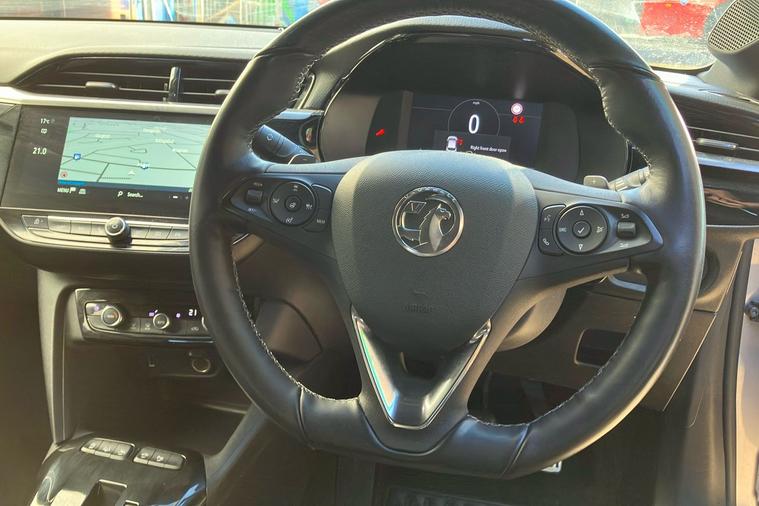Presented in an eye-catching metallic Shiny Grey, this used 2019 Vauxhall Corsa Ultimate offers a dynamic experience with its automatic transmission and responsive turbocharged 1.2 engine, delivering 128 horsepower. Effortlessly blending style and practicality, it features striking 17-inch bi-colour diamond-cut alloy wheels and a modern five-door hatchback design. With acceleration from 0 to 62 mph achieved in just 8.2 seconds and a top speed of 129 mph, it delivers both efficiency and excitement, returning a combined 54.3 mpg. Enjoy smart touches such as a panoramic rear view camera, IntelliLux LED Matrix headlights, heated front seats, adaptive cruise control, and keyless entry and start. With seating for five and a generous 309 litres of boot space, this Corsa is ready for daily commutes or weekend adventures. This vehicle is fully ULEZ compliant, making it ideal for city driving.