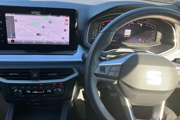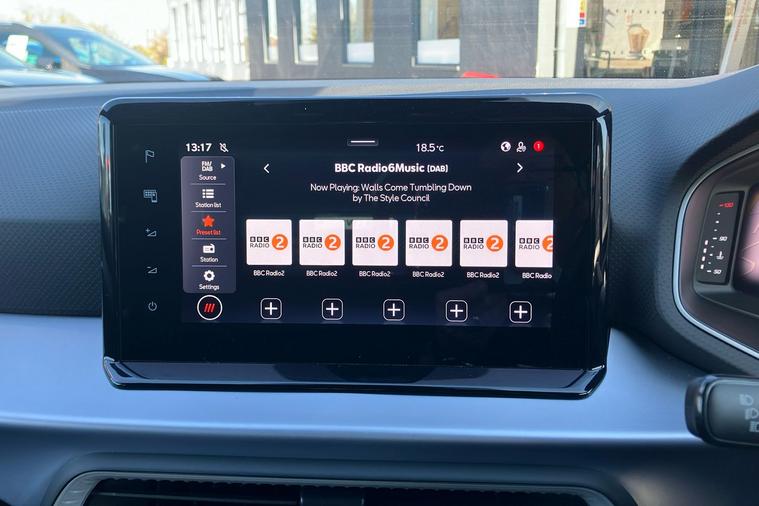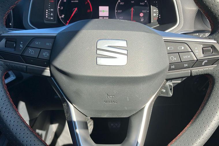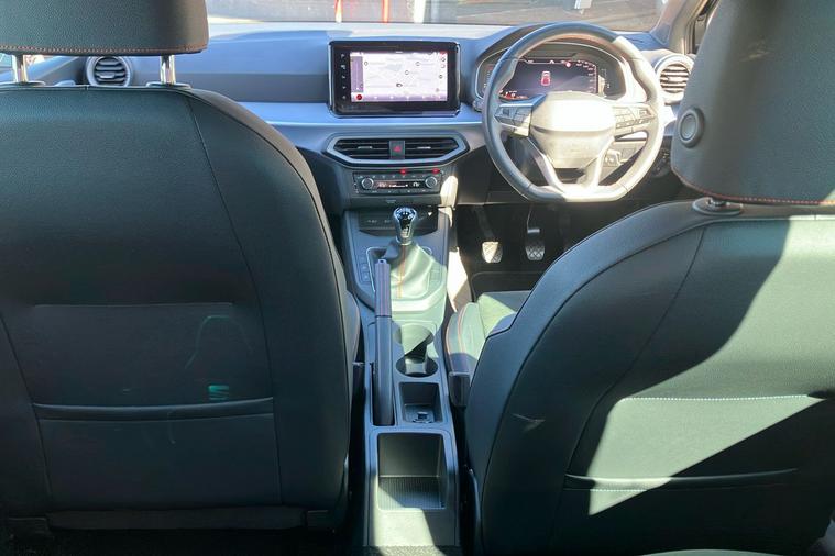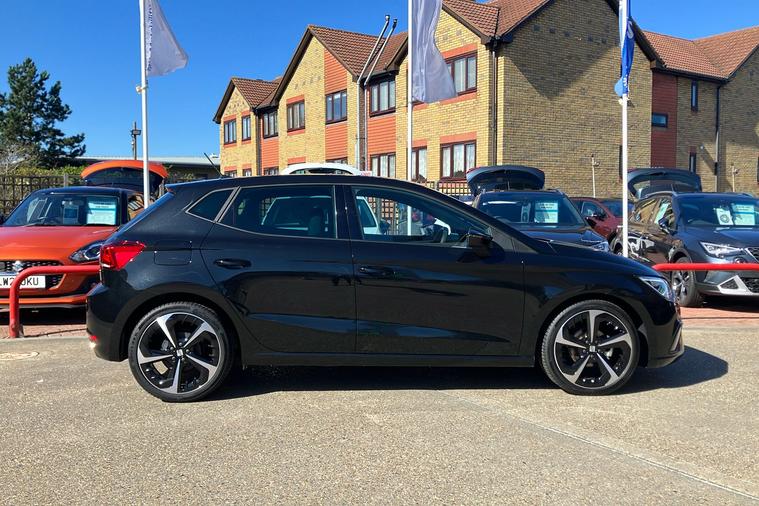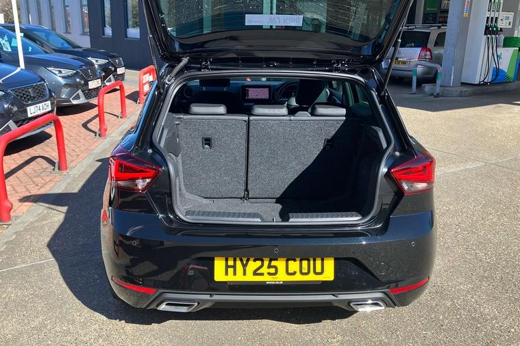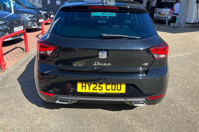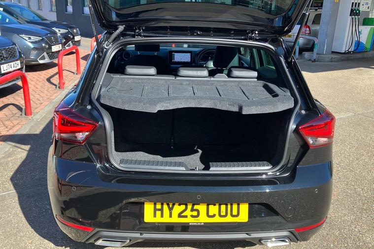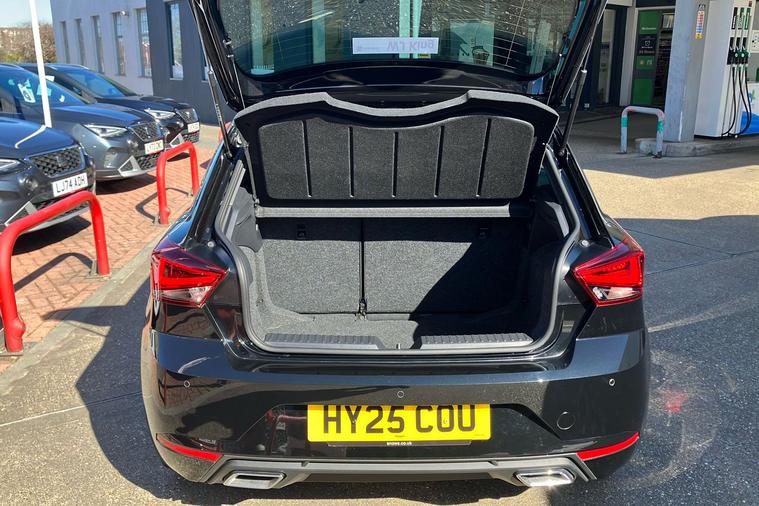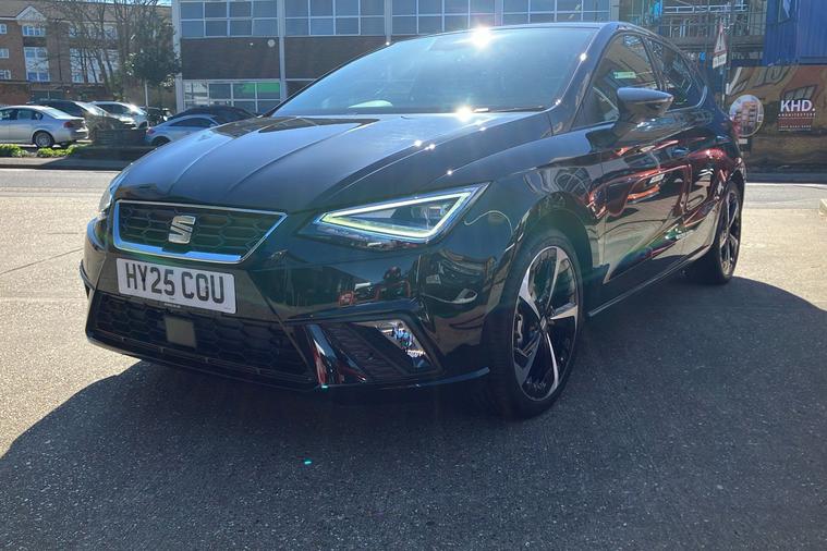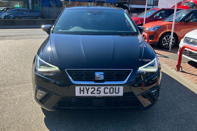 Presenting a used SEAT Ibiza FR Sport from 2025, finished in striking Metallic Midnight Black. This stylish hatchback combines sharp FR exterior detailing with sporty 18-inch performance machined alloy wheels in black and grey. Enjoy a connected journey with the advanced 9.2-inch navigation system, Full Link smartphone integration, and an immersive 10-inch digital cockpit. The interior is enhanced by ambient lighting, illuminated air vent surrounds, and unique red accents, creating a modern atmosphere for up to five occupants. With a roomy 355-litre boot, this five-door hatchback offers practical appeal while delivering up to 52.3 mpg, making it economical for daily drives. The 1.0 litre petrol engine offers a smooth manual driving experience and can reach speeds up to 116 mph. Comfort is assured with dual zone climate control, supportive sports seats, and a host of thoughtful features throughout. This car is ULEZ compliant.