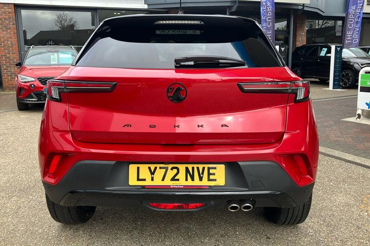 Experience bold style with this 2020 Vauxhall Mokka Ultimate, presented in striking Power Red metallic paint. This used SUV offers a smooth drive with automatic transmission and a responsive 1.2 turbo petrol engine. Enjoy a dynamic driving experience, reaching 0-62 mph in just 9.2 seconds and up to a top speed of 124 mph. With space for five and a generous boot capacity, it provides practicality for everyday journeys. The vehicle delivers impressive efficiency, with a combined fuel economy of 47.9 mpg. Registered in February 2023 and with only one previous keeper, it blends modern appeal with efficiency and comfort. Stand out features include intuitive navigation, a digital instrument cluster, panoramic rear-view camera, heated front seats and steering wheel, adaptive cruise control, advanced park assist, and a wireless charger for mobile devices. This Vauxhall Mokka is ULEZ compliant, making it ideal for urban driving.