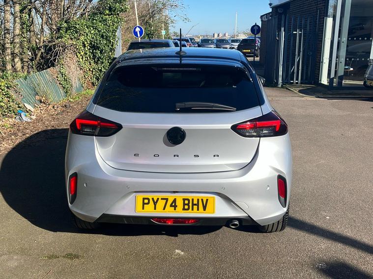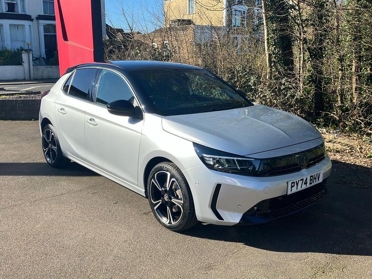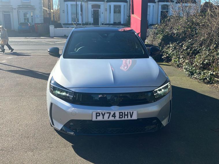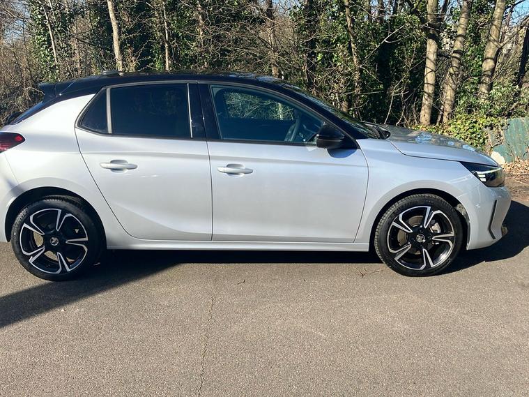 Presenting a 2023 Vauxhall Corsa Gs in eye-catching Crystal Silver metallic. This stylish five-door hatchback blends sporty looks with practical space, offering comfortable seating for five and an impressive boot capacity of up to 1, 118 litres with the seats folded. Powered by a 1.2-litre petrol engine producing 99hp, it delivers a combined fuel efficiency of 54.3mpg and a maximum speed of 120mph. Standout exterior features include 17-inch diamond-cut alloy wheels and a distinctive black roof, while the interior boasts a digital instrument cluster and a large 10-inch touchscreen multimedia system. This used example benefits from advanced driver assistance such as cruise control with intelligent speed limiter, front and rear parking sensors, side blind spot alert, and a rear parking camera. Registered in October 2024 and with only one previous keeper, this Corsa is also ULEZ compliant, making it ideal for city driving.