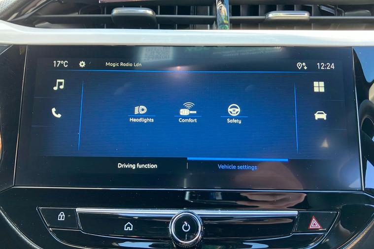Introducing this used 2023 Vauxhall Corsa GS, finished in striking Carbon Black metallic. Combining impressive efficiency with a sporty edge, this five-door hatchback achieves up to 54.3 mpg combined and offers comfortable seating for five. Its 1.2 turbo petrol engine delivers 99 horsepower and a top speed of 120 mph, making it perfect for both city and motorway journeys. The Corsa GS stands out with diamond-cut 17 alloy wheels and sporty exterior accents. With a generous 309-litre boot for everyday practicality, it’s ideal for busy lifestyles. Enjoy the convenience of features like a 10 touchscreen multimedia system, rear parking camera, and front and rear parking sensors. ULEZ compliant, this vehicle allows worry-free driving in urban areas. With only one previous owner since first registration in January 2025, it presents a great opportunity to own a stylish, well-equipped and economical hatchback.