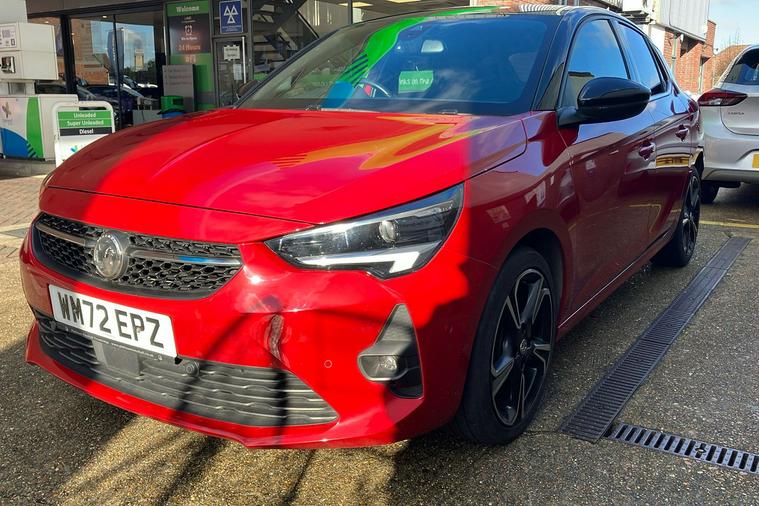 Experience the Vauxhall Corsa Ultimate, finished in striking Flame Red. First registered in January 2023 and with just one previous keeper, this used hatchback delivers an engaging drive with a responsive 1.2 turbo petrol engine and smooth automatic transmission. The Corsa achieves a combined 54.3mpg and offers spirited acceleration from 0 to 62mph in just 8.2 seconds, reaching a top speed of 129mph. Inside, enjoy the comfort of heated front seats, a massage function for the driver, and premium ambient LED lighting. Advanced technology includes a panoramic rear view camera, parking distance sensors, keyless entry and start, and a Multimedia Navi Pro system. Safety features such as lane assist, blind spot alert, and enhanced automatic emergency braking are also included. With generous boot space and stylish bi-colour alloy wheels, this Corsa Ultimate is both practical and eye-catching – and it’s fully ULEZ compliant.