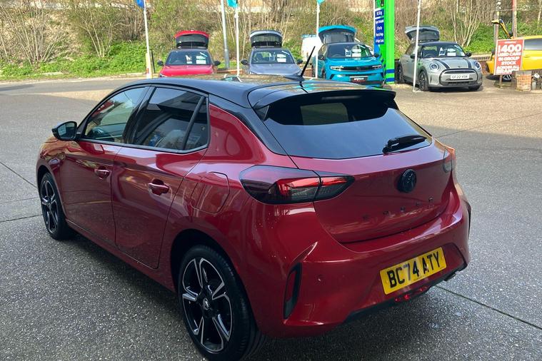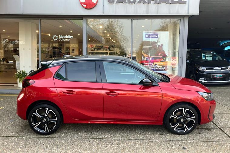 MANUFACTURERS WARRANTY 29th of JAN 2028 - Presented in striking Crimson Red premium metallic, this 2023 Vauxhall Corsa Gs offers an energetic blend of sporty looks and practicality. Powered by a responsive 1.2 turbo petrol engine producing 99 hp, it achieves a top speed of 120 mph while maintaining impressive combined fuel economy of 54.3 mpg. The five-door hatchback design provides easy access for up to five passengers and a generous boot space of 309 litres, expanding to 1, 118 litres with seats folded.Distinctive alloy wheels and sleek styling details give the car a standout road presence. Comfort and convenience are enhanced with features such as a 10-inch touchscreen multimedia system, digital instrument cluster, front and rear parking sensors, and a rear-view camera. Ownership peace of mind comes with just one previous keeper. This Vauxhall Corsa is fully compliant with the London ULEZ, making it an excellent choice for city driving.