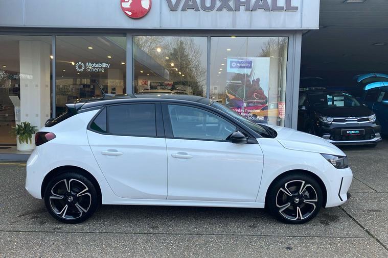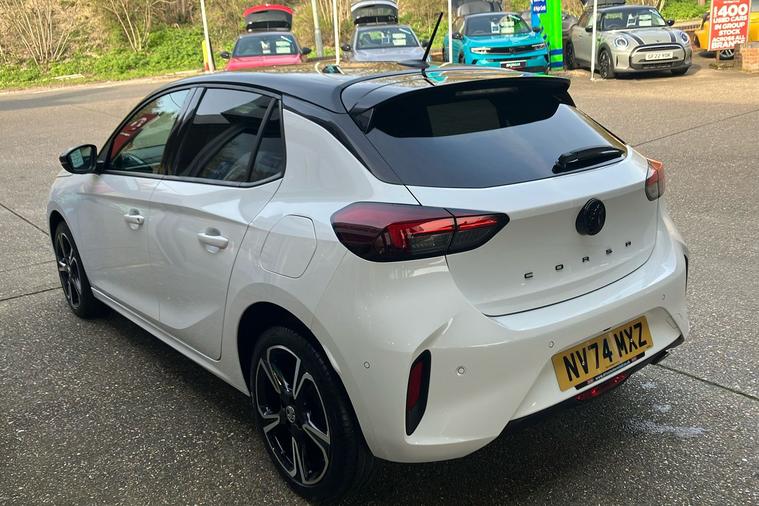 MANUFACTURERS WARRANTY 8TH DECEMBER 2027 - Presenting the 2023 Vauxhall Corsa GS, finished in a striking Arctic White. This stylish five-door hatchback combines practicality with a sporty edge. Driven by a lively 1.2 Turbo petrol engine, it delivers a nippy 99hp and reaches a top speed of 120mph. Its impressive combined fuel economy of 54.3mpg helps you go further for less, while providing enough space for everyday use with 309 litres of boot space, expanding to 1, 118 litres when needed. The sleek design features eye-catching diamond-cut alloy wheels and bold body detailing. Inside, enjoy contemporary touches like a digital instrument cluster and a large 10-inch touchscreen. Modern safety and driver-assistance features are all present for peace of mind. With seating for five, this Vauxhall Corsa is perfect for city driving and beyond. ULEZ compliant, it’s ready for modern motoring in any urban environment.