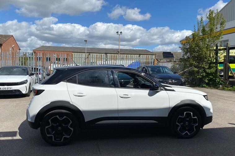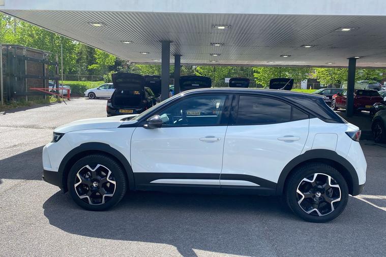 Presenting a used 2020 Vauxhall Mokka Electric in striking Brilliant White Jade. This all-electric SUV combines impressive style with everyday practicality, offering seating for five and a versatile boot space of up to 1, 060 litres. Enjoy an electric range of up to 209 miles and relax with the convenience of automatic transmission and front wheel drive. The Ultimate grade brings premium touches throughout, including heated front seats, a panoramic rear view camera, adaptive cruise control, a 10-inch multimedia navigation system, and a wireless charger for mobile devices. Drive with confidence thanks to advanced safety features such as lane keep assist, forward collision alert, and enhanced emergency braking with pedestrian detection. This vehicle is ULEZ compliant, ensuring access to low emission zones without worry. With only one previous keeper and registered in March 2023, this Mokka Electric is ready to elevate your everyday journeys.