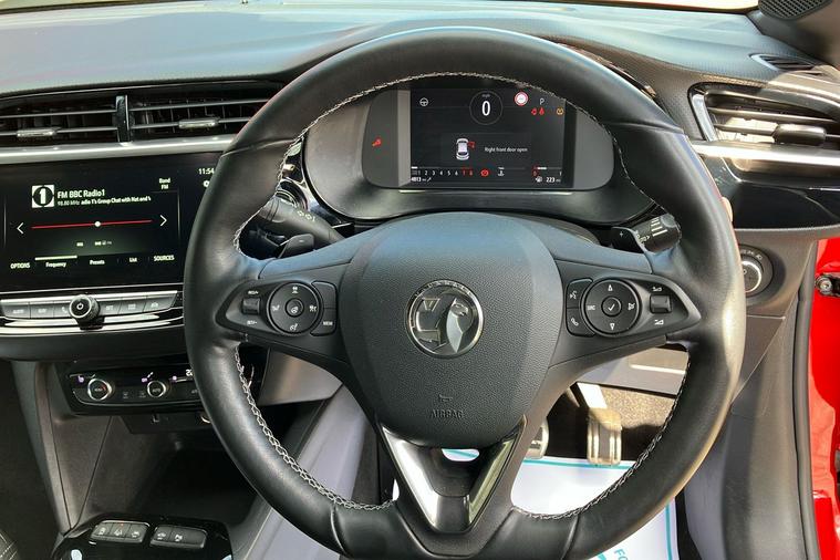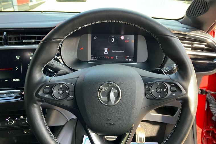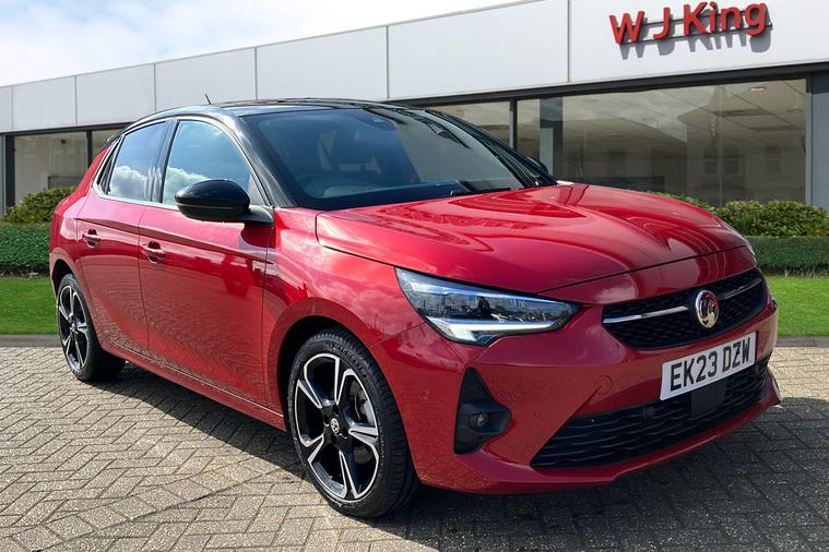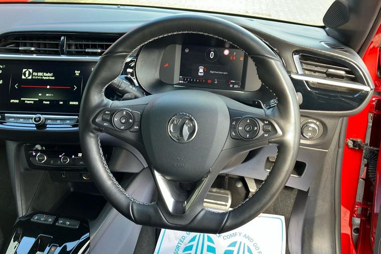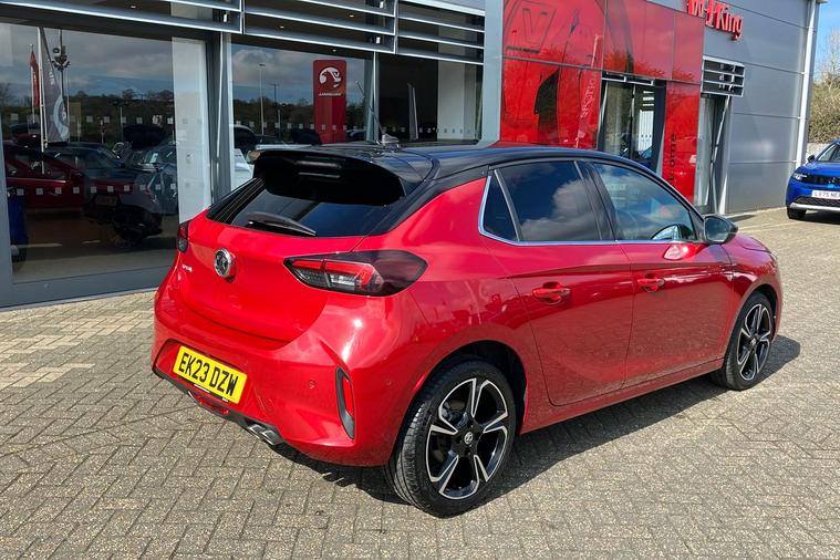 Experience the dynamic drive of this used Vauxhall Corsa Ultimate, first registered in March 2023 and finished in striking Flame Red. This five-door hatchback is powered by a 1.2-litre turbo petrol engine, paired with smooth automatic transmission and front wheel drive, delivering 128 hp and acceleration from 0 to 62 mph in just 8.2 seconds. With a maximum speed of 129 mph and a combined fuel efficiency of 54.3 mpg, its ideal for both city and longer journeys. The spacious interior seats five comfortably, while the boot offers ample space for everyday needs. Standout design elements include 17-inch diamond-cut bi-colour alloy wheels and bold styling touches throughout. This Euro 6 vehicle is ULEZ compliant, so you can enjoy driving in clean air zones across the UK with confidence. Enjoy top specification and modern style in this exceptional Corsa Ultimate.
