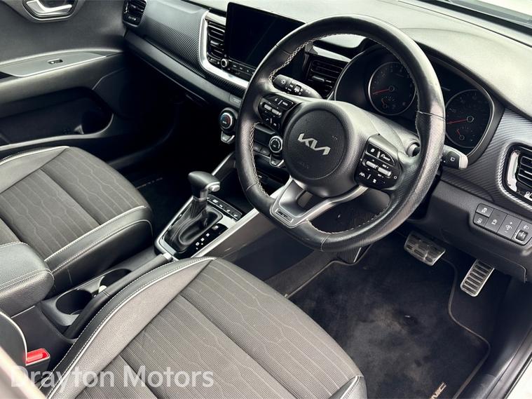 Having arrived in stock as a part exchange , We are proud to offer for sale this fantastic Top of the Range Kia Stonic 1.0 T Gdi Mhev Gt Line S Suv 5dr Petrol Hybrid Dct Euro 6 (s/s) (118 Bhp) finished in the striking White Pearl.This stunning Stonic has covered a lovely mileage, and benefits from a full Drayton service history, so we are not expecting it to be around for long! This superb Stonic is ready for its new owner!Benefiting from an array of standard spec which includes Sat Nav, a Rear Camera, Heated Seats and much more besides, you will be sure to truly love each and every journey you take in it! We will carry out a comprehensive vehicle health check also the next scheduled service and MOT, For you whilst the Stonic is in preparation with us for your peace of mind too, you can also opt to take out a range of service plan options to save on future servicing needs as well - just ask us for more details!With Kia Warranty through to July 2030 as well, give us a call today to discuss how we can help you explore the possibility of purchasing it either in person or over the phone with a range of collection and delivery options as well!