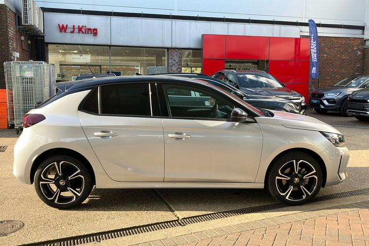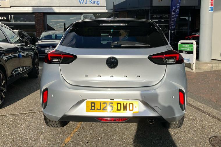 Experience stylish and efficient driving with this 2023 Vauxhall Corsa Gs in eye-catching Metallic Crystal Silver. This used five-door hatchback seats five comfortably and boasts a modern design with distinctive sports body styling and sleek 17-inch diamond-cut gloss black alloy wheels. Enjoy excellent fuel efficiency with a combined 54.3 mpg from the 1.2 turbo petrol engine, producing 99 hp and capable of reaching up to 120 mph. The practical interior includes a spacious 309-litre boot, expanding to 1, 118 litres, making it ideal for everyday life or longer trips. With features like a 7-inch digital instrument cluster, 10-inch multimedia touchscreen, dark tinted rear windows, and a rear parking camera, every journey feels premium. This vehicle is compliant with London’s ULEZ requirements, ensuring you drive with minimal restrictions in low emission zones. Don’t miss the chance to own this well-presented and versatile Corsa Gs.