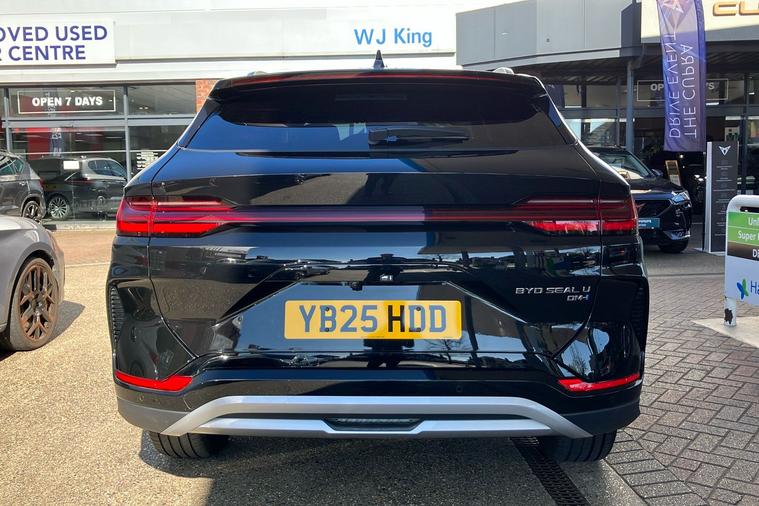 Discover the 2024 BYD SEAL U DM-i Comfort in stunning Obsidian black metallic, a stylish plug-in hybrid SUV designed for efficiency and comfort. With a combined fuel economy of 706.8 mpg and an impressive electric-only range of up to 77 miles, this SUV helps you minimise visits to the pump while reducing emissions. The smooth automatic transmission and front-wheel drive ensure a relaxed and capable driving experience, while the spacious interior accommodates five passengers comfortably. Practical luggage space ranges from 425 litres to a generous 1, 440 litres with the seats down, offering flexibility for any journey. Standout features include a panoramic sunroof, advanced ambient lighting, integrated 360-degree camera, smartphone wireless charging, and a premium sound system, enhancing every drive. Registered in June 2025, this used vehicle is an excellent choice for those seeking modern style with exceptional fuel efficiency. ULEZ compliant for clean city motoring.