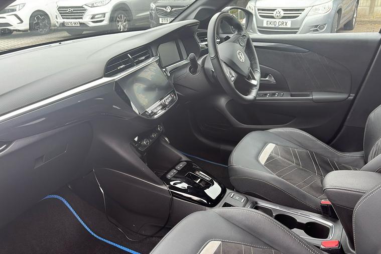 This 2023 Vauxhall Corsa Ultimate is presented in striking Metallic Mineral Black, blending style with practicality. Powered by a lively 1.2 Turbo petrol engine with automatic transmission, it delivers dynamic acceleration from 0 to 62 mph in just 8.2 seconds and reaches a top speed of 129 mph. The Corsa offers impressive fuel efficiency with a combined 54.3 mpg. Its well-proportioned five-door hatchback design comfortably seats five and provides a generous 309-litre boot, expandable to 1118 litres with rear seats folded. The Ultimate trim brings a premium touch with features such as 17-inch bi-colour alloy wheels, a panoramic rear view camera, IntelliLux LED matrix headlights, heated comfort front seats, and adaptive cruise control. With only one previous keeper and registered in March 2023, this car is ULEZ compliant, making it ideal for city driving as well as longer journeys.