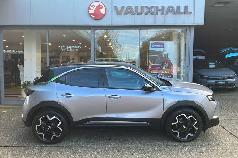 MANUFACTURERS WARRANTY UNTIL 2028, - Experience modern electric driving with this used Vauxhall Mokka Electric Ultimate in stylish two coat metallic Quartz grey. Combining striking looks with a confident SUV presence, it comes equipped with a 50kWh battery, offering an impressive electric range of up to 209 miles—making it ideal for both city commutes and longer journeys. With seating for five and a flexible boot space expanding from 310 to 1, 060 litres, practicality is assured. The automatic transmission, front wheel drive layout, and a smooth 134 horsepower ensure a responsive yet relaxing drive, reaching up to 93 mph when needed. First registered in March 2025 and boasting just one previous keeper, this car offers peace of mind alongside its refined design. As an electric vehicle, it is ULEZ compliant, making it perfect for environmentally conscious drivers navigating urban low emission zones. A superb choice for those seeking comfort and efficiency.