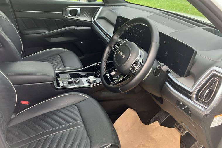 Experience modern versatility with this 2024 Kia Sorento, finished in stunning premium pearl white paintwork. As a plug-in hybrid, it offers an impressive combined fuel efficiency of 176.6 mpg and can travel up to 34 miles on electric power alone. With seven seats and a spacious, flexible interior, there’s ample room for both passengers and luggage. The Sorento provides assured handling thanks to four wheel drive and automatic transmission. A panoramic sunroof opens up the cabin, while the advanced 360 degree view monitor and remote smart park assist make parking effortless. Stay connected with a 12.3-inch touchscreen navigation system and enjoy the high-quality Bose sound system. Practical features include ventilated front seats, multiple USB-C ports, and a smart power tailgate for easy access. Registered in July 2024 and ULEZ compliant, this used Sorento blends style, practicality, and efficiency for peace of mind on every journey.