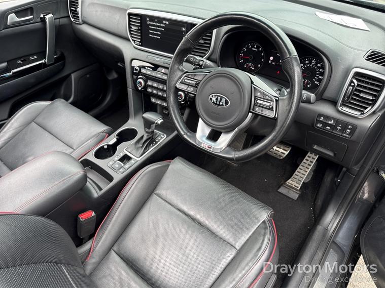 Here we have a fantastic opportunity to purchase a stunning Kia Sportage GT-LIne S 1.6 T-Gdi Suv 5dr Petrol Automatic DCT AWD Euro 6 (s/s) (174 Bhp)finished in the striking Dark Penta Metal Grey Metallic Paint . Benefitting from a Full Service History, this stunning Optima SW comes complete with a fantastic array of standard specification that includes 8-Speaker JBL - Premium Sound System with Subwoofer - External Amp and Front Centre Speaker, 8in Touchscreen Satellite Navigation with European Mapping and Traffic Messaging Channel - TMC, Apple CarPlay and Android Auto, Bluetooth with Voice Recognition and Music Streaming, DAB Radio with MP3 Compatibility, Kia Connected Services Featuring TomTom - Traffic - Speed Cameras - Local Search and Weather Updates, Shark Fin Antenna, USB - Charging Port - Rear, Heated Front and Outer Rear Seats, Heated Steering Wheel, USB and AUX Ports for Connection of an Audio Media Device - iPod - Memory Stick, Wireless Phone Charger and much more besides too! Why not give us a call to discuss the purchase of this amazing car before its too late?