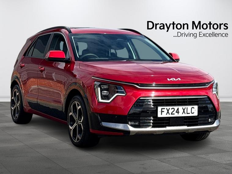 Having arrived in to stock with us in part exchange once again, we are thrilled to be able to offer this stunning top of the range Niro 4 with less than 3000 miles! Finished in the striking Runway Red, this amazing Niro comes to us benefitting from a Full Drayton Kia Service History, was previously supplied by us to the one and only previous owner and this lovely Niro has also covered such a lovely low mileage for the age too!Last serviced by ourselves in February on just 2633 miles, we will still thoroughly inspect the Niro for you whilst it is in preparation with us to ensure your complete peace of mind and to keep your running costs over the next 12 months or to a minimum. Coming complete with a fantastic array of standard spec that includes a Sunroof, Sat Nav, 360 Cameras, Heated Seats and a Heated Steering Wheel and much more besides to truly ensure you love each and every journey, you will also be able to drive away in confidence knowing that you are protected by the remaining part of the Kia 7 Year Warranty through to 2031 as well! Whether it be to discuss a personalised video, to arrange a test drive or ask about Nationwide Home Delivery options - just give us a call today as we doubt it will be with us for long!