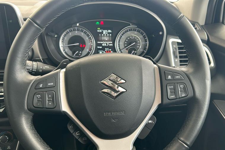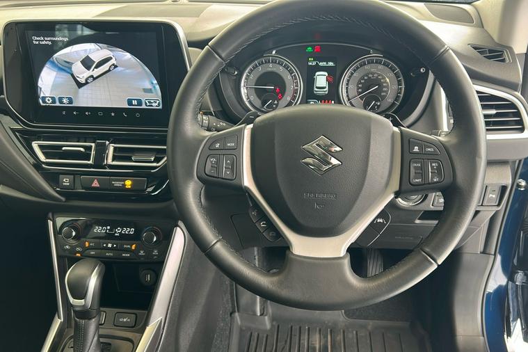 Finished in striking blue, this 2021 Suzuki S Cross Ultra Hybrid SUV offers a versatile and modern drive. Registered in late 2023 and presented in used condition, it benefits from an efficient hybrid engine paired with smooth automatic transmission and four-wheel drive. Enjoy strong economy with a combined 48.7 mpg, while the spacious 5-door design provides flexible seating for up to five and generous boot space of up to 665 litres. With 113 horsepower and a top speed of 108 mph, this practical SUV blends comfort and peace of mind. Highlights include keyless entry and start, a panoramic sunroof, 360-degree camera, heated front seats, and a large infotainment display with smartphone connectivity and navigation. Safety is assured with features such as lane departure systems and adaptive cruise control. This Suzuki meets Euro 6 standards and is ULEZ compliant, making it ideal for city and motorway journeys alike.