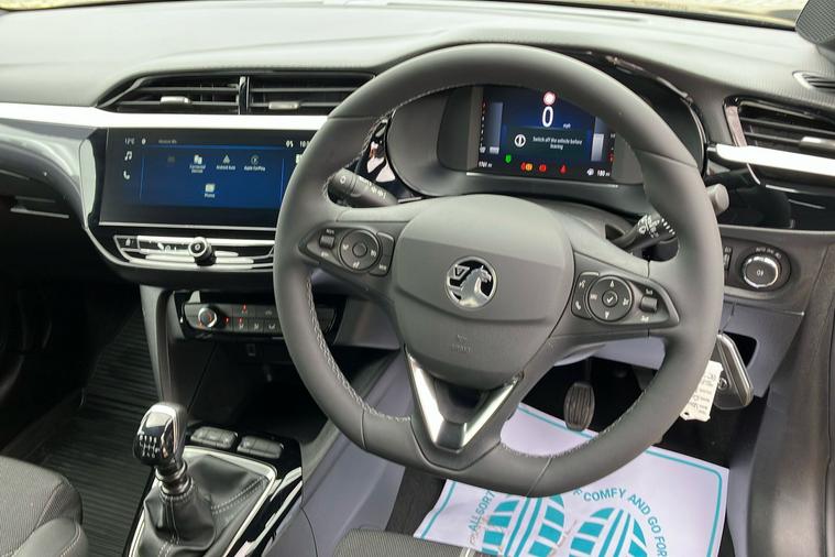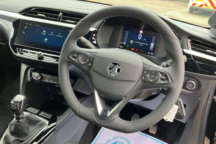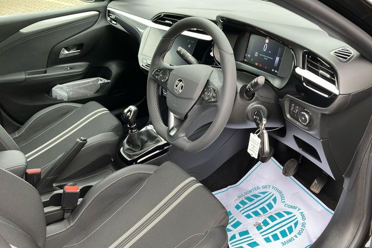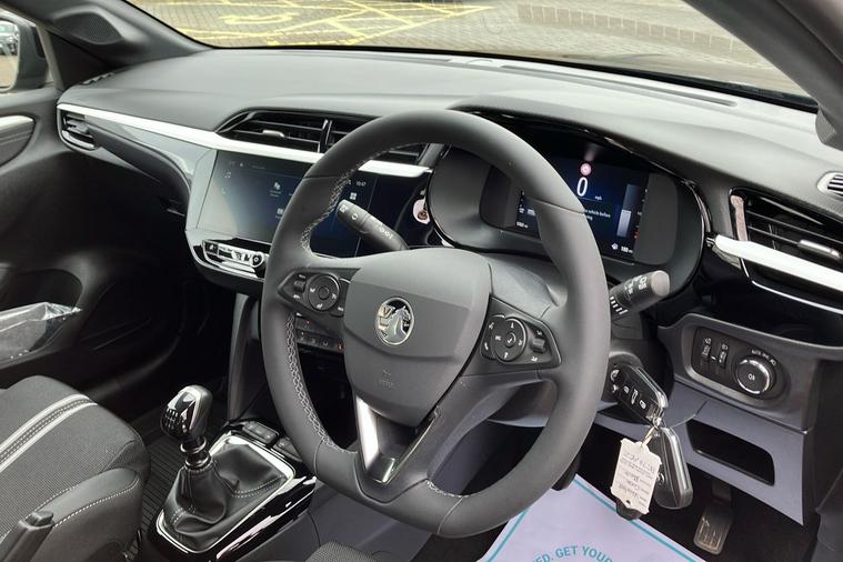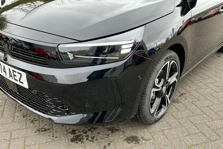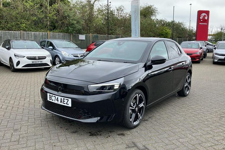Experience the style and practicality of this 2023 Vauxhall Corsa Gs Hatchback, finished in two-coat metallic Carbon Black. With seating for five and five doors, this hatchback offers a spacious interior and a generous boot capacity of 309 litres, expanding to 1, 118 litres when you need extra room. Boasting a responsive 1.2 Turbo petrol engine, enjoy smooth and efficient drives with a combined fuel economy of 54.3 mpg and a top speed of 120 mph. The striking design is complemented by diamond-cut high-gloss black 17-inch alloy wheels and sporty black features throughout. Inside, discover a 10-inch touchscreen multimedia system, digital instrument cluster, and supportive sports-style seats for added comfort. This ULEZ compliant car has had just one previous keeper and is ready for your next journey, combining modern features with practical everyday driving.