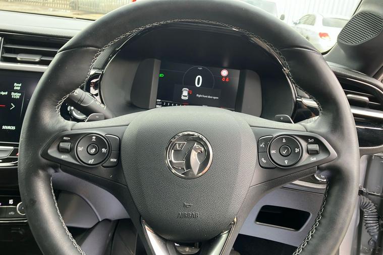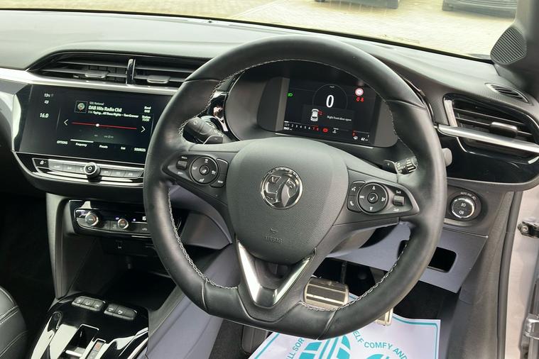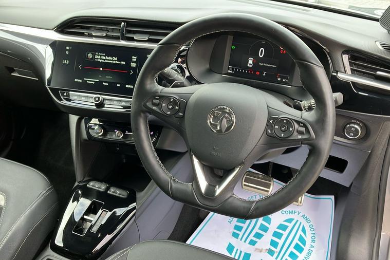 Presenting a stylish and well-kept Vauxhall Corsa Ultimate Hatchback in metallic Shiny Grey, first registered in January 2023 and with just one previous keeper. This five-door model blends modern design with a refined drive, thanks to its automatic transmission and punchy 1.2 turbo petrol engine that delivers an engaging experience, reaching 62 mph in just 8.2 seconds, while the top speed is 129 mph. Impressive efficiency is on offer, with a combined fuel consumption of 54.3 mpg, making it an ideal option for both city and country journeys. The Corsa offers comfortable seating for five, practical boot space and a selection of features such as advanced alloy wheels, panoramic rear view camera and IntelliLux LED matrix headlights, adding sophistication and convenience to every drive. This model is ULEZ compliant, ensuring hassle-free driving in low emission zones across the UK.