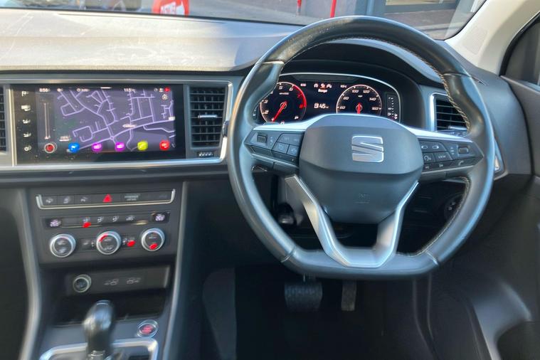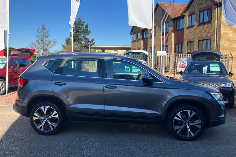 Presenting a used SEAT Ateca SE Technology in striking Metallic Graphite Grey. This stylish SUV, first registered in February 2023, offers a smooth automatic drive with front wheel control. With a 1.5 petrol engine delivering 148 hp, it combines efficiency and performance, achieving up to 44.1 mpg combined and a top speed of 126 mph. The Ateca is designed with comfort in mind, providing generous space for five occupants and a substantial 510-litre boot, making it ideal for everyday tasks and longer journeys. The SE Technology trim enhances the driving experience with added conveniences such as keyless entry, navigation system, wireless phone charger, park assist, and cruise control. Modern exterior touches like 18-inch alloy wheels and chrome detailing add to its appeal. This vehicle is also compliant with ULEZ regulations, ensuring effortless journeys into low emission zones. Discover practicality and style in this well-equipped SUV.