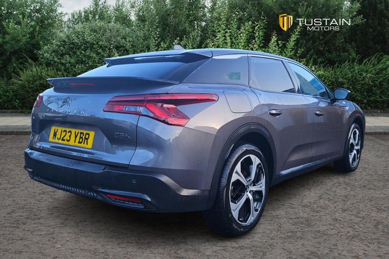 This 2023 Citroen C5 X Sense Plus is a clear vehicle history example, offering peace of mind. This Euro 6 compliant 1.2 litre petrol model comes with Automatic Dual Zone Air Conditioning, ensuring a comfortable cabin temperature. Stay connected and entertained with My Citroen Drive Plus, featuring Bluetooth connectivity. The Automatically Illuminating LED Headlamps with Automatic High Beam Assist provide excellent visibility, while the Automatic Illumination of Headlamps when Unlocking adds convenience. Parking is made simple with Front and Rear Parking Sensors and a Reversing Camera offering Top Rear Vision with a Wash Function.Experience a smooth drive with the Citroen C5 X Sense Plus, boasting a 0-62mph acceleration time of 10.4 seconds. This model also features a large boot space, making it ideal for carrying luggage or shopping. These features combined demonstrate how this Citroen C5 X Sense Plus offers a superior driving experience compared to other vehicles in its class.