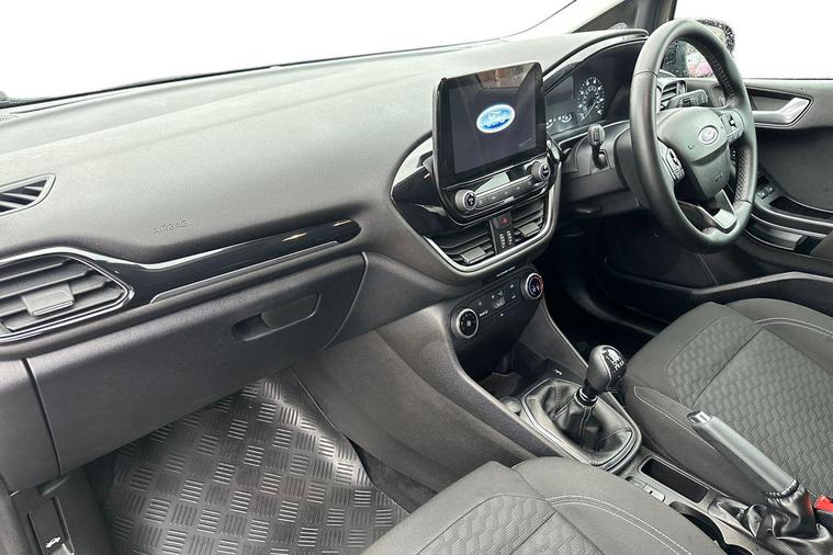 This 2023 Ford Fiesta T Titanium is a superb example, having had only one owner since new. It boasts a responsive 1.0 litre petrol hybrid engine, meeting Euro 6 emissions standards, and comes equipped with a host of desirable features. Navigate with ease using the SYNC 3 system with navigation, which seamlessly integrates with Android Auto and Apple CarPlay, or utilise the Ford SYNC2.5 system also offering Android Auto and Apple CarPlay. For enhanced visibility and safety, it features LED headlights with integrated daytime running lights and fog lights, while manual air conditioning ensures a comfortable cabin environment. Parking is made simpler with rear parking distance sensors and rear parking assistance.The performance of this Fiesta is noteworthy, achieving 0-62mph in just 9.4 seconds, demonstrating its agility and efficiency. These highlights, such as the advanced SYNC system and LED lighting, indicate how this particular vehicle offers a superior experience compared to other similar models on the market. This well maintained, low owner vehicle presents a compelling choice for anyone seeking a modern and well equipped compact car.