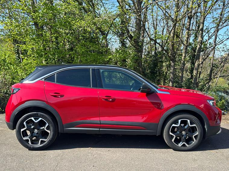 Presented here is a used 2020 Vauxhall Mokka in striking Power Red, combining modern design with practicality. This SUV offers versatile space, comfortably seating five, with generous boot capacity and a moveable boot floor for added flexibility. The automatic transmission and 1.2 turbo petrol engine deliver a balanced drive, achieving up to 47.9 mpg combined. Acceleration from 0 to 62 mph takes just 9.2 seconds, and it can reach a top speed of 124 mph. The Mokka Ultimate stands out with stylish bi-colour alloy wheels, IntelliLux LED Matrix headlights, and a smart panoramic rear view camera. Featuring live navigation, wireless mobile device charging, and a heated steering wheel, this car is as convenient as it is comfortable. ULEZ compliant, this vehicle is ideal for city and urban driving without restriction. Enjoy your journeys in style and confidence.