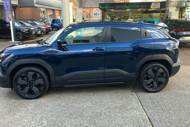 Introducing the Suzuki E Vitara, presented in a striking Metallic Celestial Blue finish. Previously used as a demonstrator, this five-door hatchback offers ample room for five occupants and delivers a smooth driving experience with its automatic transmission. The E Vitara blends practicality and style, featuring a modern design that stands out on the road. With a maximum speed of 93 mph, it is suited for a variety of journeys, from city driving to weekend getaways. This physical stock vehicle is ULEZ compliant, making it an excellent choice for driving in and around London or other low emissions zones. Registered in October 2025, the E Vitara allows you to enjoy peace of mind with its recent history and up-to-date features, while the metallic finish ensures it looks as good as it drives. Elevate your driving experience with this modern, efficient hatchback.