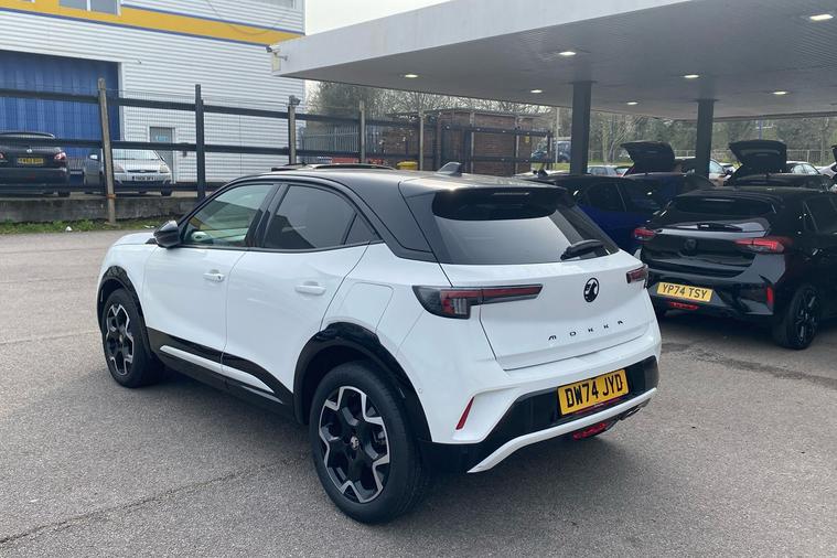 MANUFACTURERS WARRANTY UNTIL FEB 2028 Experience the style and practicality of this 2024 Vauxhall Mokka Ultimate in Arctic White. This used SUV features an automatic transmission and a responsive 1.2-litre petrol engine, offering up to 46.3 mpg combined for efficient everyday driving. Capable of reaching a top speed of 126 mph, it combines impressive performance with comfort. Its five-door design provides easy access, and the spacious boot holds 350 litres, expanding to 1, 105 litres with the seats folded. Inside, enjoy a premium atmosphere with thoughtful ambient lighting. Key highlights include striking 18-inch black diamond cut alloy wheels, a panoramic 180-degree rear-view camera for confident manoeuvring, advanced safety features such as blind spot assist and lane positioning assist, plus seamless connectivity through a smartphone interface and wireless mobile phone charging. With just one previous keeper, this Vauxhall Mokka is ready for its next adventure. ULEZ compliant for worry-free city driving.