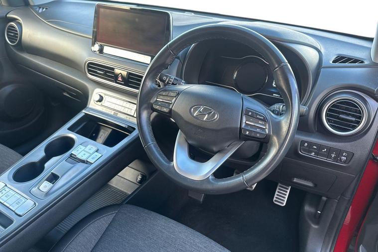 With only one owner and a remarkably low mileage of 29, 721 miles for its 2020 registration, this Hyundai KONA Premium Electric presents an exceptional find. This well maintained electric vehicle boasts a substantial 68 kWh battery, offering a maximum range of 279 miles when new, making it ideal for both daily commutes and longer journeys. Key features designed to enhance your driving experience include Smart Adaptive Cruise Control with Stop and Go functionality, dual zone Climate Control for personalised comfort, and seamless Apple CarPlay integration for your smartphone. Furthermore, the convenience of Keyless Entry with an Engine Start-Stop Button and the added safety of a Blind Spot Detection System ensure a sophisticated and secure drive.The Hyundai KONA Premium Electric stands out with its impressive battery capacity and range, indicating its capability to cover significant distances on a single charge. Charging is also convenient, with a full charge at home taking approximately 9 hours and 35 minutes using a 7kW charger, and a rapid charge to 80% achievable in just 53 minutes at a compatible public charging station. These charging times, combined with the extensive range, position this KONA as a practical and efficient choice for electric vehicle ownership, offering a superior experience compared to many other electric cars on the market.