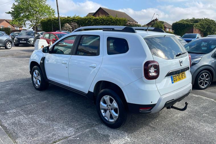 Introducing this used Dacia Duster Comfort, finished in striking Glacier White with stylish graphite cloth interior. Registered in September 2020, this SUV offers generous practicality with five doors, spacious seating for five, and an impressive boot capacity of up to 1, 623 litres with the seats folded. Powered by a 1.3-litre petrol engine, it delivers 128 hp, and reaches a top speed of 119 mph, while offering a combined efficiency of 45.6 mpg. The manual transmission and front-wheel drive layout provide a balanced driving experience.Featuring convenient touches such as a rear parking camera, rear parking sensors, cruise control, satellite navigation via a 7-inch touchscreen, and roof bars with distinctive Duster inscription, this Duster is designed for both daily commuting and weekend escapes. Enhanced with optional space-saving spare wheel, this model is presented in excellent condition and stands ready to meet a variety of driving needs. ULEZ compliant.