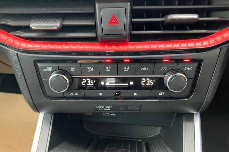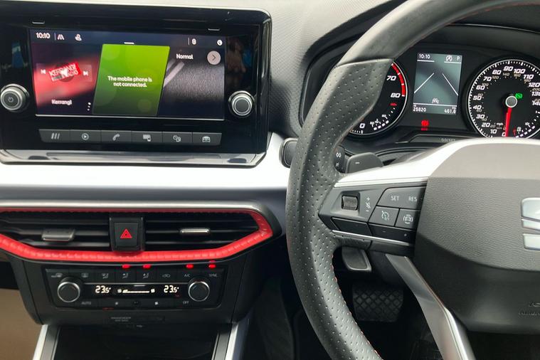 - Perforated Leather Flat-Bottomed Steering Wheel with Red Stitching and FR Logo with Leather Gear Knob and Handbrake