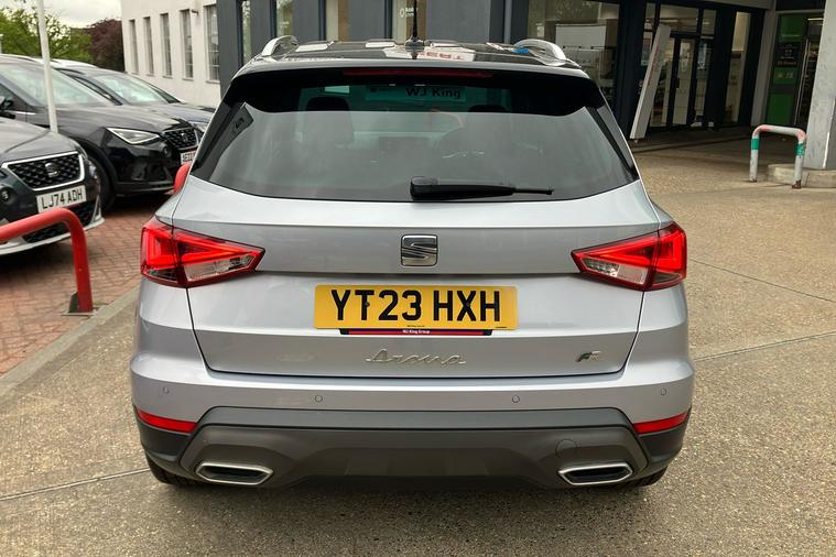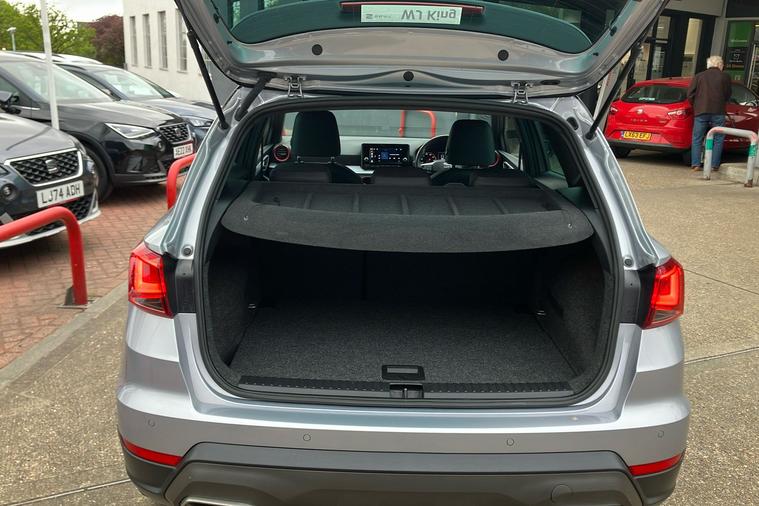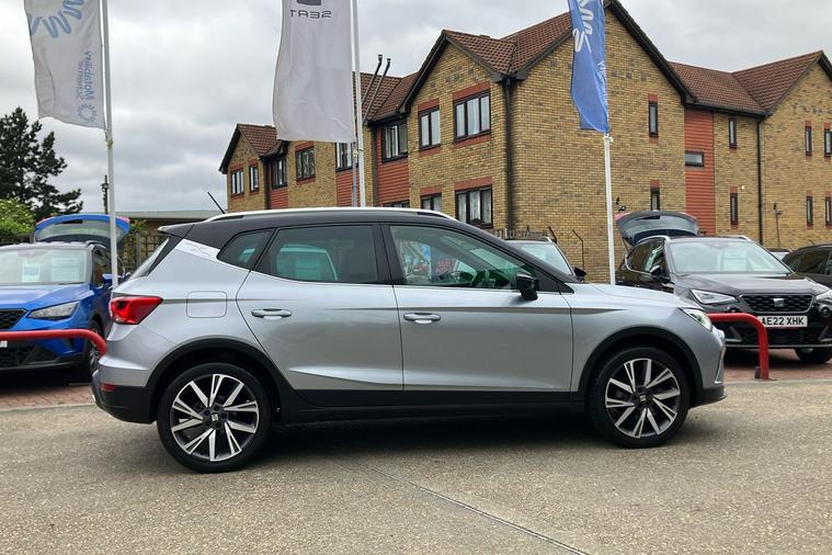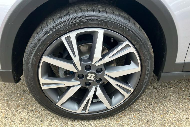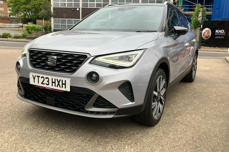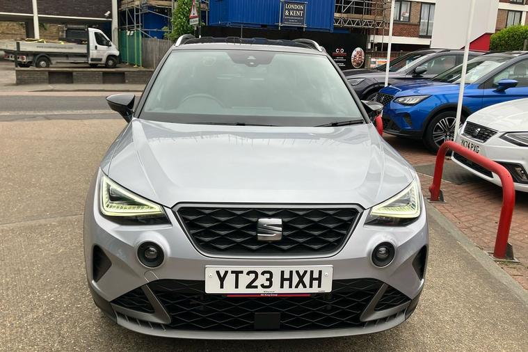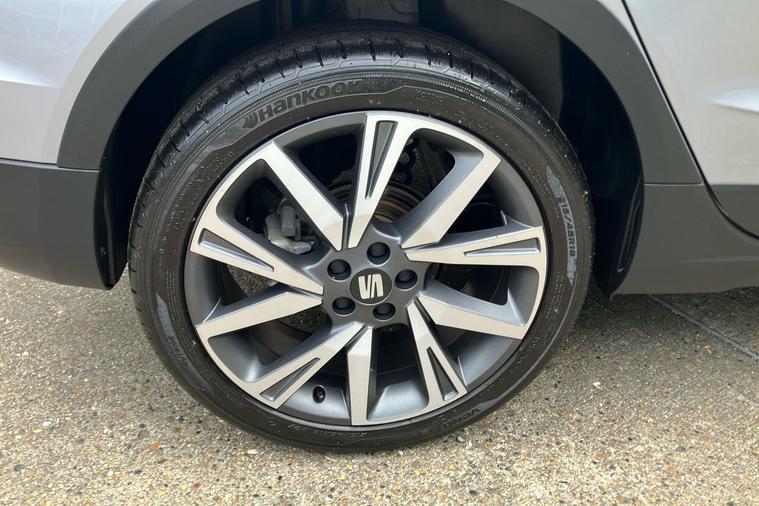 Experience the style and comfort of the SEAT Arona FR Edition, finished in sleek silver. Registered in March 2023 and previously owned by just one keeper, this used SUV blends dynamic design with everyday practicality. Enjoy smooth automatic driving with a responsive 1.0 petrol engine, delivering up to 46.3 mpg combined and a maximum speed of 118 mph. The spacious interior easily accommodates five passengers, while a 400-litre boot provides generous storage. Highlights include striking 18-inch machined alloy wheels in black and grey, a modern 8.25-inch touchscreen display for seamless connectivity, and rear parking sensors for confident manoeuvring. The Arona FR Edition is also ULEZ compliant, making it ideal for city driving. Additional features such as a wireless phone charger and dark tinted rear windows complete this versatile and stylish package, perfect for both urban adventures and longer journeys.