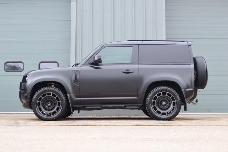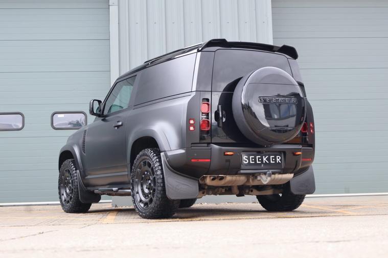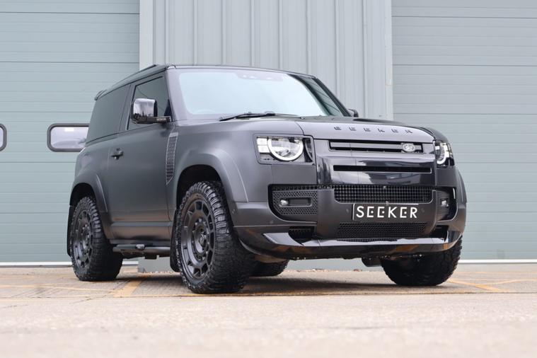 Defender 90 D250 Commercial – Seeker Styling Edition Arguably the best-looking Defender 90 Commercial in the UK today. This vehicle features: Matte PPF finish with high gloss roof, bonnet, and tailgate. Body-coloured arches and Seeker black styling pack in matt and gloss black. Upgraded interior with high gloss piano black SKR interior pack. Bespoke Nappa leather interior crafted to a premium standard. Otiva alloy wheels with aggressive mud terrain tyres. Front splitter and rear spoiler for enhanced styling. Side steps, mudflaps, and Seeker badging for a complete exterior finish. Built for those who want commercial practicality with head-turning looks. Seeker Styling are the largest dealer of styled Defender commercials in the UK. We offer nationwide delivery and competitive finance from 8.9% APR. Out-of-hours WhatsApp: 01246362506 This is not just a Defender. This is a Seeker defender