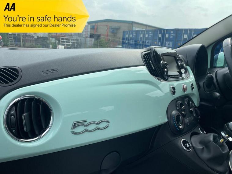 Graham Marsh Car Sales are delighted to offer this superb 2018 Fiat 500 1.2 Lounge Hatchback 3dr Petrol Manual Euro 6 (s/s) (69 bhp), finished in glorious Smooth Mint. This stylish and economical city car comes well equipped with power steering, electric windows, remote central locking, driver and passenger airbags, ABS, ESP, alloy wheels, panoramic glass roof, rear parking sensors, cruise control, and the Uconnect infotainment system with AUX, USB, and Bluetooth connectivity. A superb little car that's ULEZ compliant and ideal for city driving, offering retro charm with modern practicality. Don't miss out—contact us today!