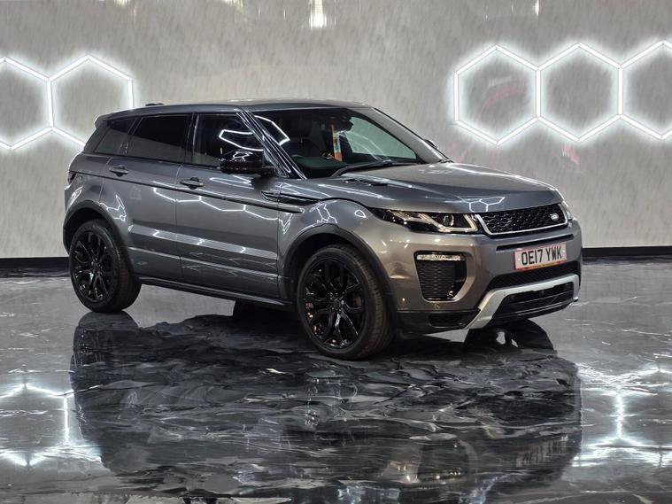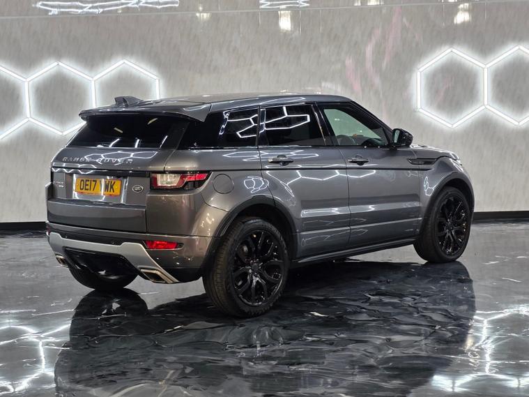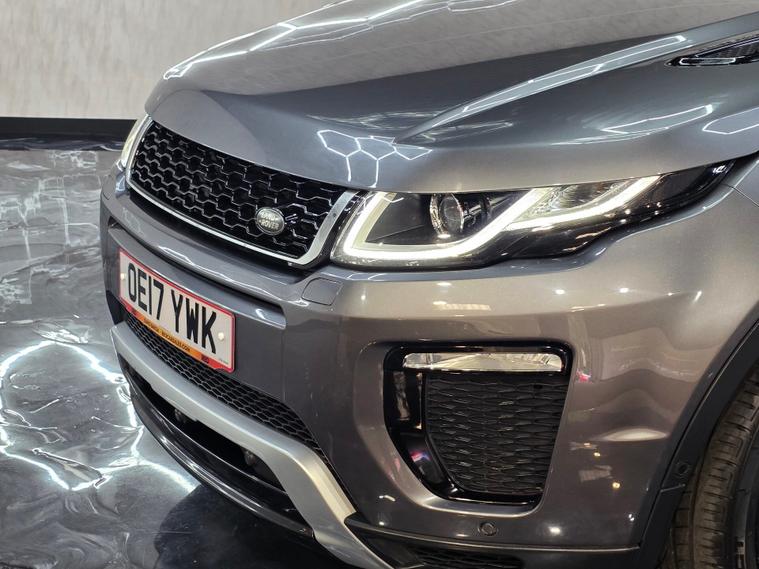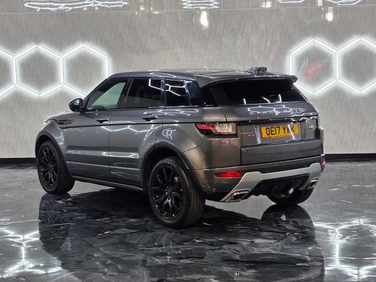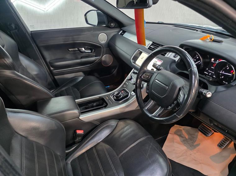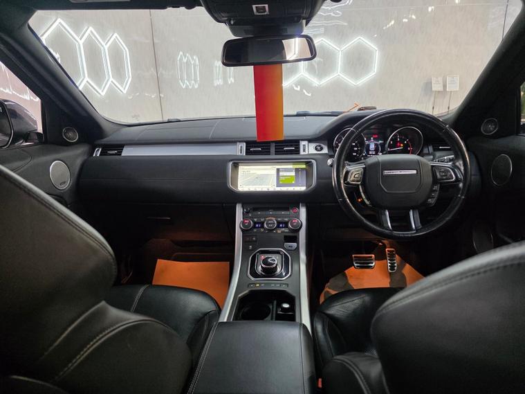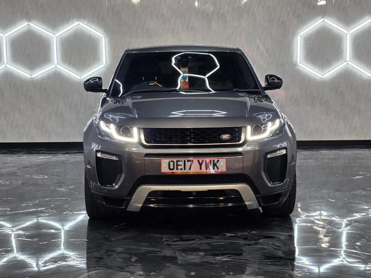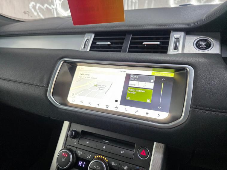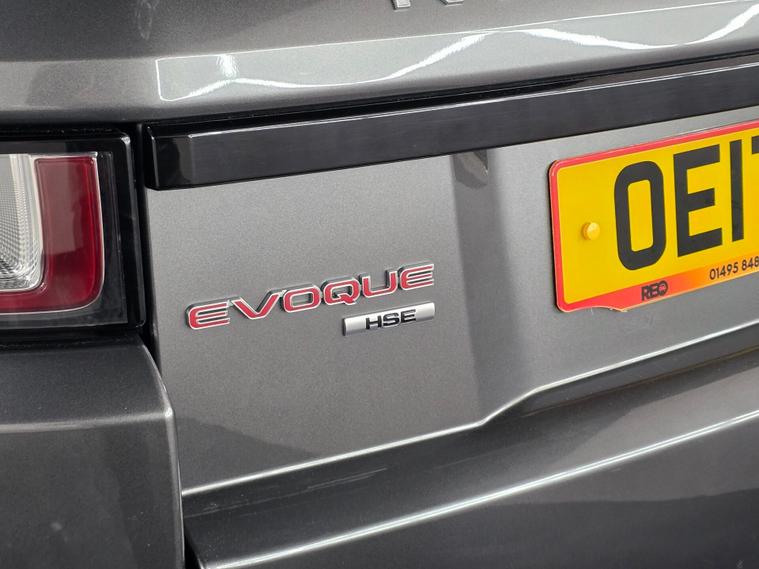 This Range Rover Evoque comes with 2 keys and full HSE Dynamic specification. On the exterior, it features 20in 5 Split-Spoke Alloy Wheels in Sparkle Silver, Narvik Black styling pack with bonnet louvers, grille bars and surrounds, dynamic body styling, Xenon headlights with LED signature, heated windscreen, fixed panoramic roof with powered blind, and a powered gesture tailgate. Inside, it offers 12-way electric memory seats with Windsor leather upholstery, ambient mood lighting, dual-zone climate control with rear vents, illuminated Range Rover treadplates, heated front seats, and a perforated leather steering wheel with paddle shift. Technology includes InControl Touch Pro Navigation with 10.2in dual-view screen, Meridian Surround Sound 825W, DAB, Bluetooth, USB, InControl apps and remote services, and a TV tuner. Driver assistance and safety highlights include front and rear parking sensors with surround camera system and park assist, blind spot monitor with reverse traffic detection, lane keep assist, traffic sign recognition, hill descent and hill start assist, autonomous emergency braking, cruise control, trailer stability assist, and TPMS.