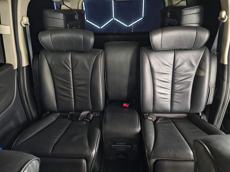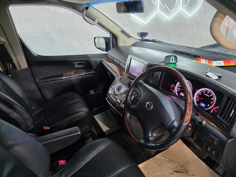 The 2008 Nissan Elgrand 3.5 V6 (E51 facelift) is powered by Nissan’s renowned VQ35DE engine, a 3.5-litre DOHC V6 that produces between 240 and 280 horsepower depending on trim and market specifications. It delivers strong low-end torque and smooth acceleration, paired with a 5-speed automatic transmission that can be configured as either rear-wheel drive or all-wheel drive. The Elgrand was designed as a luxury MPV, offering refined performance, impressive cruising comfort, and a quiet cabin. Fuel efficiency averages between 9–11 km/L, and higher trims include features such as stability control, traction control, and advanced braking systems with ABS and EBD. Inside, the Elgrand’s cabin emphasizes comfort, versatility, and premium craftsmanship. Depending on the trim level, interiors range from plush fabric to full leather upholstery, with captain swivel seats, power-adjustable and heated front seats, and flexible third-row configurations. Technology is a strong point, featuring multi-zone automatic climate control, keyless entry and start, and an advanced infotainment system with HDD navigation, Bose premium sound, and a rear entertainment screen. Top trims like the Highway Star and Rider (Autech) add exclusive styling touches, mood lighting, and optional dual sunroofs, combining performance and comfort in a high-end MPV package.