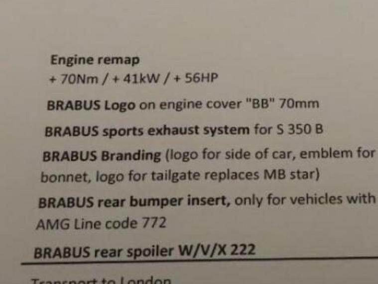 Mercedes S350 BLUETEC L AMG Line Executive – Brabus Package (invoice available) Step into a world where luxury meets performance, and exclusivity meets individuality. This is not just a car—it’s a statement. This Mercedes S350 BLUETEC L AMG Line Executive has been transformed by Brabus into a 1-of-1 masterpiece. Under the hood, a 3.0L 6-cylinder diesel engine has received a Brabus engine remap, adding 56 hp and 70 Nm of torque, delivering performance that belies its diesel heart. The Brabus enhancements extend far beyond the engine: Brabus logo on the engine cover BRABUS branding on the tailgate, bonnet, and sides Rear bumper inserts and spoiler by Brabus Sport exhaust system paired with a Maxhaust active exhaust, giving it the sound of a V8 petrol while retaining diesel efficiency Every detail is designed to impress: AMG Line styling, Rear Seat Entertainment System, electrically adjustable front seats with cushion length adjustment, heated rear seats, Magic Vision Control (adaptive heated wipers), and a Parking Package for effortless convenience. This car is for those who refuse to settle for ordinary—for someone who wants a unique driving experience, unmatched style, and the thrill of performance in a diesel sedan. But that’s not all – it comes with a warranty on the engine and gearbox, with an extended warranty available from Warranty First. Fully HPI clear, and offering the highest market part exchange value, this is an opportunity you won’t want to miss. ???? Call now to experience automotive excellence at: Red Sparrow Motors, Southsea Works, Rodney Road, Portsmouth, PO4 8SP 02393022198 | 02393022198