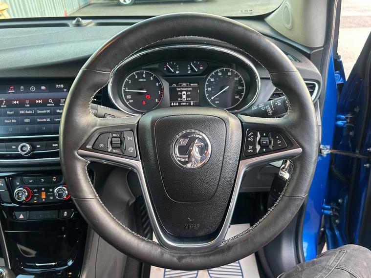 Graham Marsh Car Sales Ltd are delighted to offer this totally superb 2017 (67) Vauxhall Mokka X 1.4i Turbo Elite Nav SUV 5dr Petrol Manual Euro 6 (s/s) (140 ps) finished in glorious metallic blue with power steering, electric windows, remote central locking, driver and passenger airbags, anti-lock brakes, ESP, alloy wheels, cruise control, AUX, USB, Bluetooth, satellite navigation, front and rear parking sensors, full leather interior, heated front seats, a lovely, ULEZ-compliant MPV.