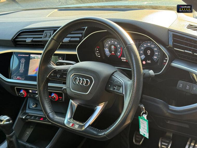 - 3-Spoke Leather Multi-Function Steering Wheel - S Badging and Grips in Perforated Leather with Contrast Stitching