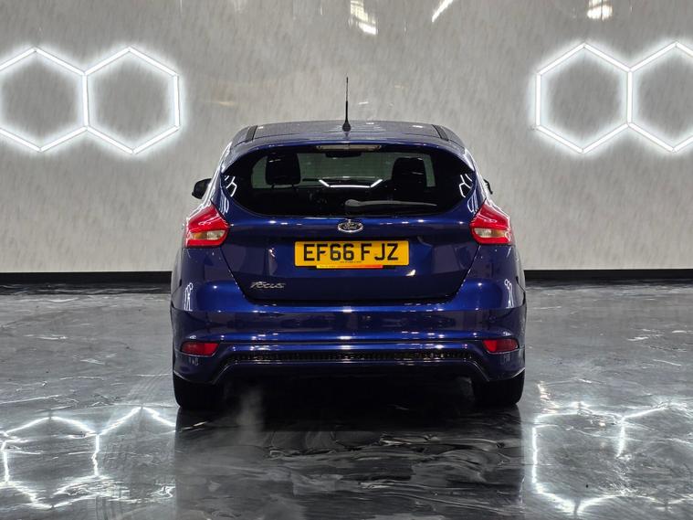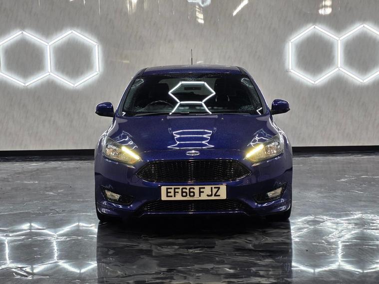Comes with 2 keys This Ford Focus ST-Line brings a sporty, aggressive look with 17'' Rock Metallic alloys, ST-Line body styling kit, rear spoiler, LED daytime running lights, black exterior detailing, and high-gloss black honeycomb grilles. It also includes heated electric mirrors, Quickclear heated windscreen, and Ford’s Easy-Fuel system. Inside, you get sports front seats, flat-bottom leather ST wheel, leather gear knob, sliding armrest with storage, SYNC3 8'' touchscreen with DAB & Navigation, Bluetooth, Ford Power Start button, manual air-con, and a colour TFT display. Safety and performance features include TVC torque vectoring control, sports suspension, rear LED lights, ISOFIX, hill start assist, and a Thatcham alarm. A clean, sharp ST-Line with the tech, the style, and the drive to match.