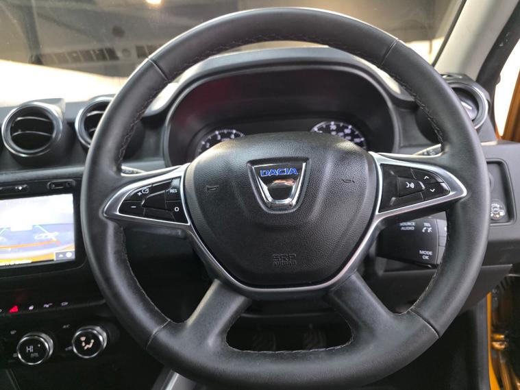 Dacia Duster – 17” Diamond-Cut Alloys | Navigation | Parking Camera | Cruise Control This smart and rugged Duster looks great in Desert Orange with stylish black and satin chrome trims, roof bars with Duster inscription, and front/rear skid plates. It also includes dark-tinted rear windows, heated electric mirrors and LED daytime running lights for a modern finish. Inside you’ll find climate control, a front centre armrest, soft-feel steering wheel, height-adjustable front seats and steering wheel, plus a practical 60/40 rear split. Tech includes a 7” MediaNav touchscreen with sat nav, Bluetooth, USB/AUX, DAB audio with fingertip controls, cruise control, speed limiter and onboard computer. Parking is made easy with rear sensors + camera and multi-view camera system. Safety features include ABS with emergency brake assist, ESC/traction control, blind spot warning, ISOFIX mounts, multiple airbags and tyre pressure monitoring. A great-looking, well-equipped SUV with fantastic practicality.