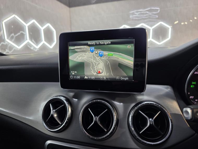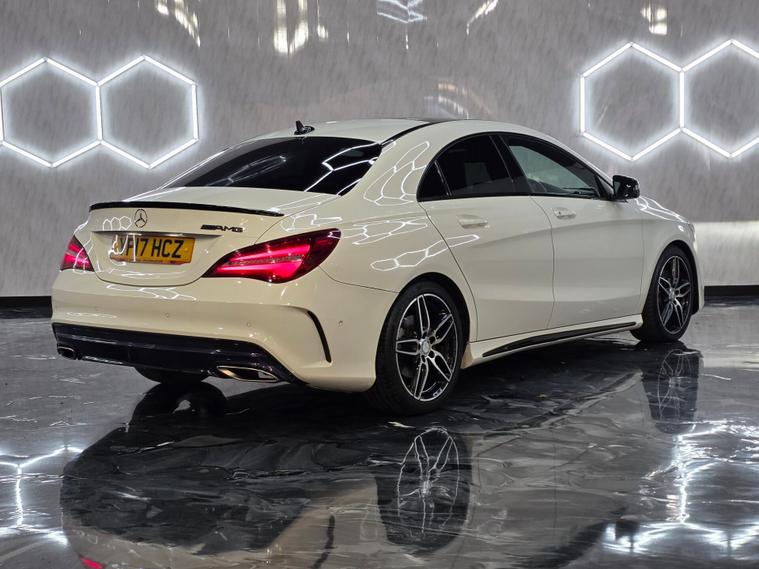 This Mercedes-Benz comes with 18in AMG 5-Twin Spoke alloy wheels in black with a high-sheen finish, AMG bodystyling, a diamond grille with chrome pins, high-gloss black accents, privacy glass, LED High Performance headlights with integrated daytime running lights, LED tail lights, painted black door mirrors, body-coloured bumpers and side skirts, and red-edged AMG floor mats. It also features heated electric mirrors, rain-sensing wipers, heated rear windscreen, front and rear footwell lighting, illuminated Mercedes-Benz door sills, Parking Pilot, and a chrome-surround electronic key. The interior includes AMG sports seats with integrated headrests, a flat-bottomed multifunction leather steering wheel with red stitching and gearshift paddles, THERMOTRONIC dual-zone climate control, ambient lighting in the headrests and door handles, a 7in media display, Audio 20 radio/CD, smartphone integration, media interface, and KEYLESS-GO start. Additional refinements include a front armrest with storage, split-folding rear seats, height-adjustable front seats, illuminated vanity mirrors, and a black roof lining. Safety features include ABS with Brake Assist, Active Brake Assist, ATTENTION Assist, multiple airbags including a driver kneebag, windowbags and sidebags, ISOFIX with top tether, ESP with ASR and Curve Dynamic Assist, adaptive brake lamps, hill start assist, tyre pressure monitoring system, crash-responsive emergency lighting, an anti-theft protection package, remote central locking and a first-aid kit with warning triangle.