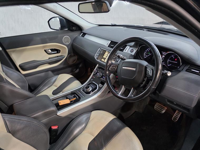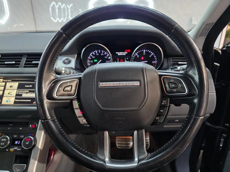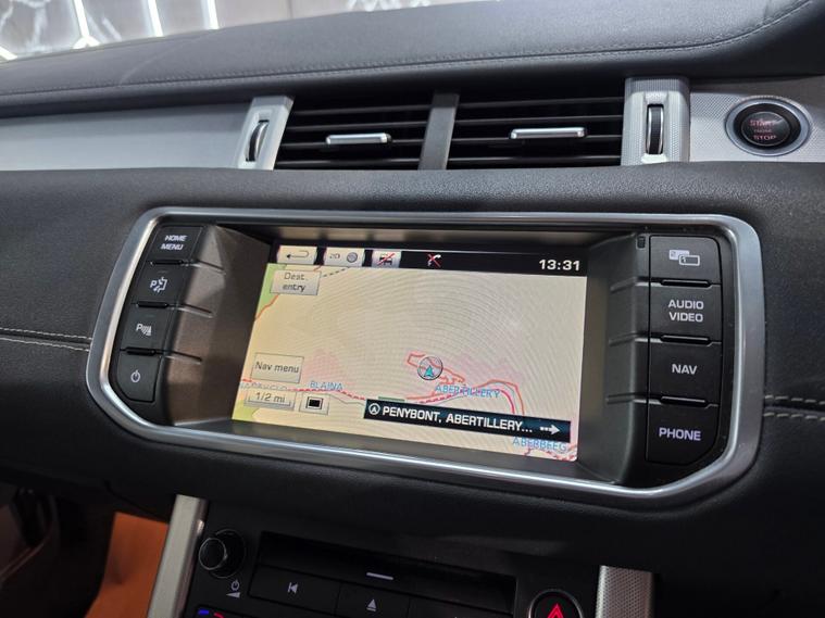 This Range Rover Evoque comes with 20in 5 Split-Spoke Style 504 Sparkle Silver alloys, Xenon headlamps with LED signature lighting, automatic headlights with power wash, front fog lights, tailgate-mounted spoiler, heated windscreen and heated washer jets. It also features premium body-coloured door handles, electrically adjustable, heated, power-folding mirrors with auto-dip in reverse, illuminated tread plates with Range Rover lettering, parking sensors front and rear, a rear-view camera and the Land Rover tyre repair system. Inside, you’ll find electric 10/8-way adjustable front seats with driver memory, heated front seats, 2-zone automatic climate control, perforated Oxford leather steering wheel, interior mood lighting, Cirrus Morzine headlining, front and rear carpet mats, rear centre armrest with cupholders and a 60/40 split rear bench. Additional touches include footwell lights, illuminated vanity mirrors, proximity-sensing overhead lights and multiple storage areas. Technology highlights include the 8in high-resolution touchscreen, HDD Premium Navigation, 380W Meridian Surround Sound System, DAB radio, Bluetooth phone and audio streaming, USB connectivity, a 5in TFT driver information display, push-button start and steering-wheel-mounted controls. Safety and driving systems include ABS, EBA, EBD, DSC, traction control, torque vectoring, roll stability control, hill descent control, hill start assist, adaptive dynamics, ISOFIX, multiple airbags including driver knee and full-length curtain airbags, TPMS, alarm system and trailer stability assist.